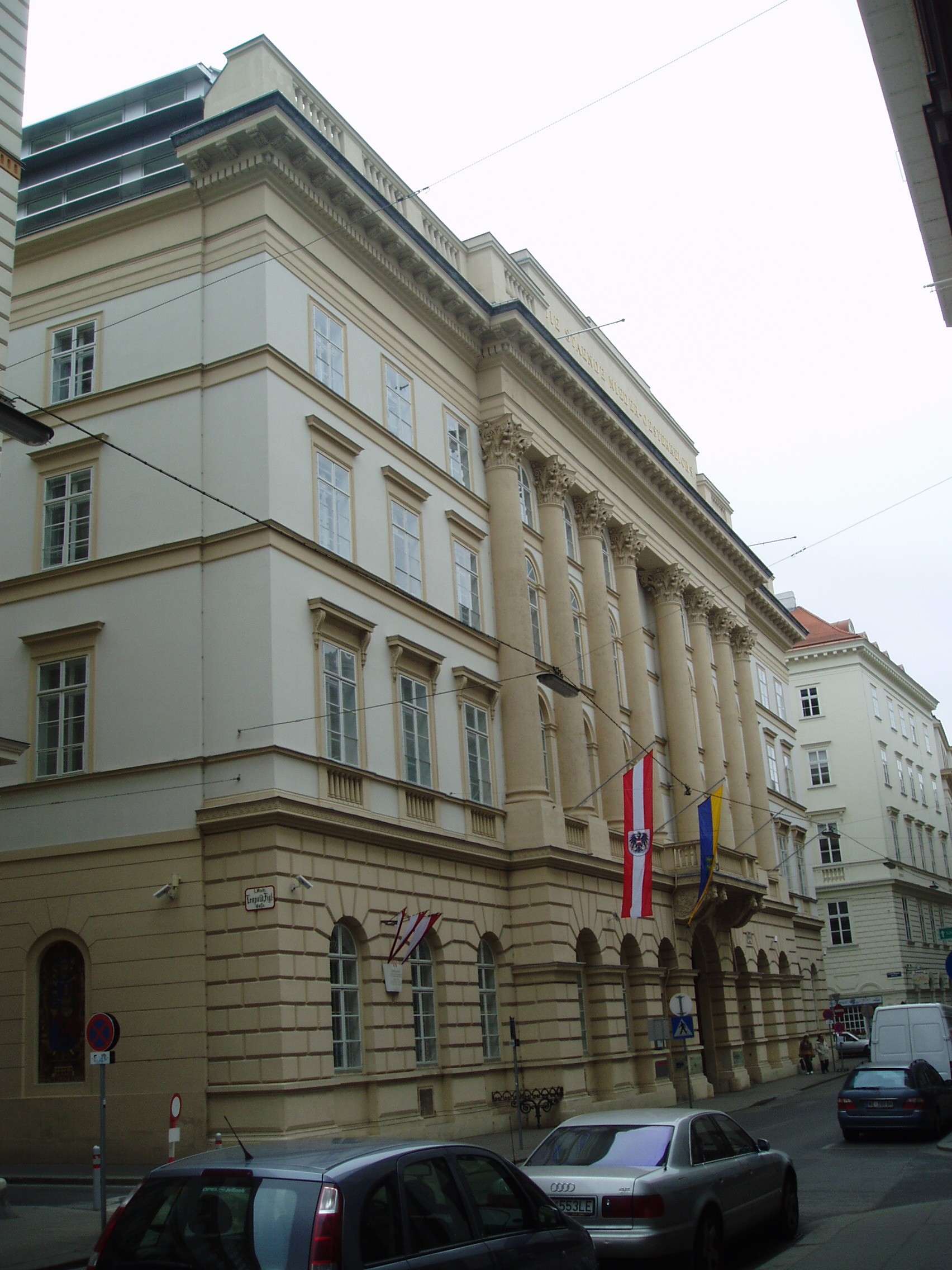 Nyilvános 1410 | 3069 | Herrengasse 13. Landhaus (a régi országház) | A hatalmas palota építési ideje nem ismert, de az 1500-as években már állt. Azóta többször átépítették, jelenlegi klasszicista köntösét 1832-48 között kapta. Ebben a palotában ült össze évszázadokon keresztül, I. Miksa uralkodása óta az alsó-ausztriai rendi gyűlés. Ma az alsó-ausztriai kormány hivatala. Klasszicista Festsaal-ja (ünnepi terem) nevezetes hangversenyek színhelye volt. Falai között megfordult Schubert, Beethoven, s itt adta első bécsi koncertjét egy 12 éves magyar csodagyermek, Liszt Ferenc. |