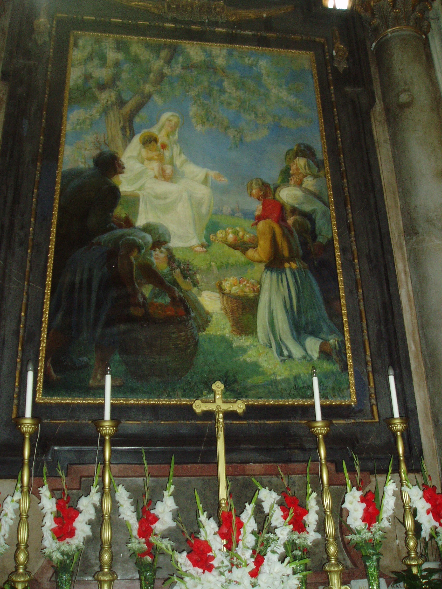Nyilvános 1053 | 1921 | Kecskemét, Kossuth tér 2. Öregtemplom | A késő barokk, copfstílusú templom a XVIII. század végén épült Oswald Gáspár tervei szerint. 1993 óta a Kalocsa-kecskeméti Főegyházmegye társszékesegyháza. Az "öreg" jelző az alföldi szóhasználatban nagyot, hatalmasat jelent. Az épület az Alföld legmagasabb építménye. A kapuzatból tör az ég felé a 35 méter magasságban erkéllyel övezett homlokzati torony. 45 tonna súlyú harangja 1819-ben készült, és hangja valamikor egészen Bugacig elhallatszott. A templom nemcsak méretei, hanem művészi értékei miatt is jelentős. Az európai stílusjegyek mellett külön kecskeméti jellegzetességekkel is rendelkezik, mint például a templombelső oszlopain felfutó szőlőfürtök, búzakévék, vagy a szószék talapzatán látható aranyozott gyümölcs–csokor. Szinte idegenforgalmi látványossággá vált Merész Gyula 1900-as évek elején festett oltárképe, a Barackos Madonna. A fénykép 2006 augusztusában készült. Felh. irod.: Heltai Nándor: Kecskemét. Kecskeméti Lapok, 1998 |