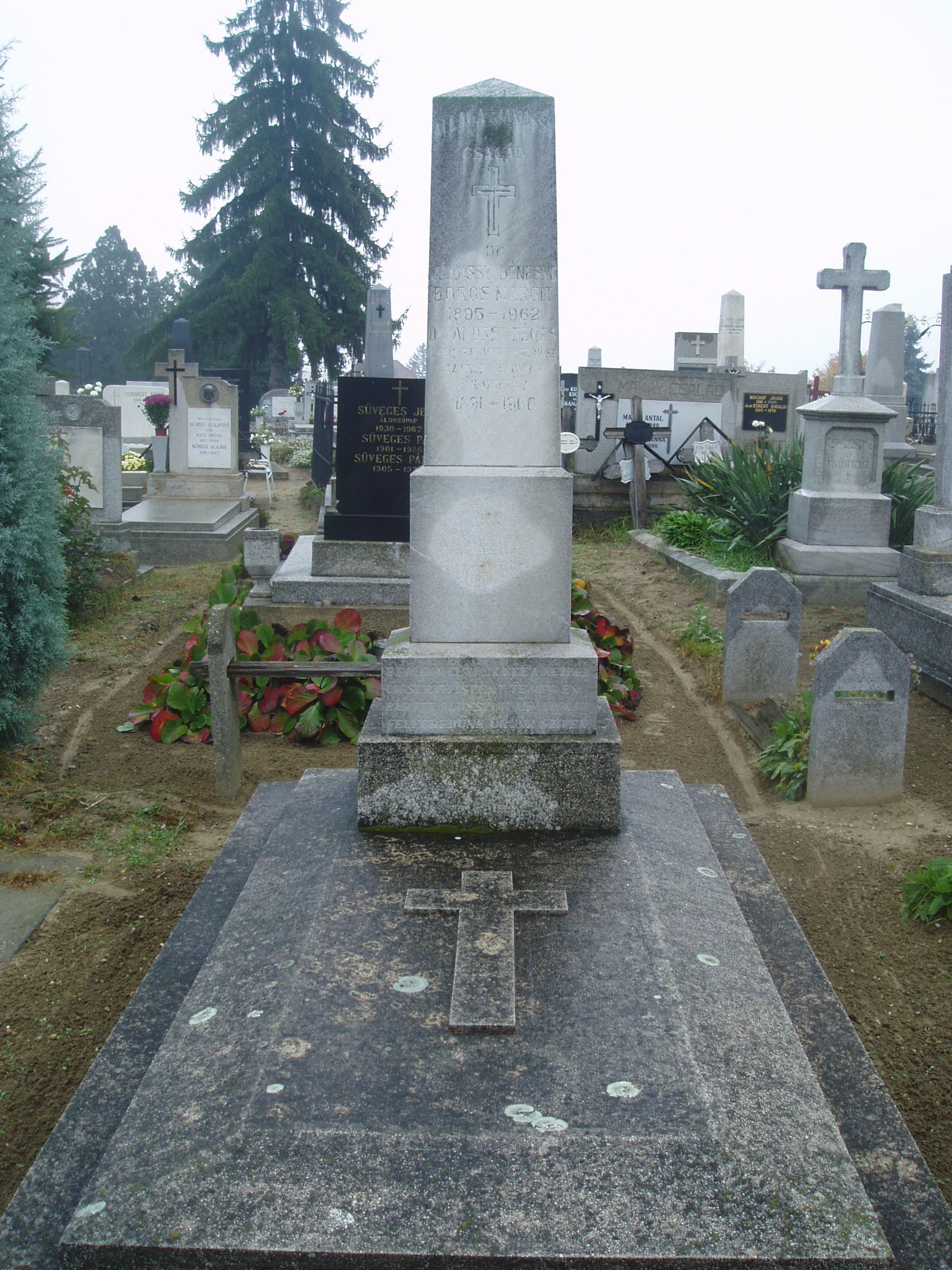 Nyilvános 1219 | 2008 | Baja, Rókus utca: Rókus temető - Allaga Géza sírja | A temetőkápolna közelében van Allaga Géza zeneszerző, karmester, cimbalomművész sírja. Az 1841-ben Óbecsén született zenész kisgyermek korában költözött szüleivel Bajára. Itt járt gimnáziumba, s kezdett zenével foglalkozni. A bécsi zeneakadémián végzett tanulmányai után színházaknál dolgozott, népszínművekhez írt dalokat. 1870-től a bajai tanítóképzőben tanított, de hamarosan a fővárosba költözött, s a Nemzeti Színház, majd az Operaház zenekarának első gordonkásaként működött. 1880-tól kezdett el a cimbalommal foglalkozni olyan eredményesen, hogy felkeltette Liszt Ferenc figyelmét is, s a Nemzeti Zenedében cimbalom tanszéket létesítettek számára. Idős korában visszatért Bajára, egyik fivére házában élt. Családi problémák és gyógyíthatatlan betegsége miatt 1913 augusztusában öngyilkos lett. A fénykép 2007 októberében készült. Felh. irod.: Herencsár Viktória: Cimbalmos ősök nyomában I. Allaga Géza. Bp. szerzői kiadás, 2001 Gál Zoltán : A cimbalom atyjának nevezték. = w.bacskaisport.hu |
