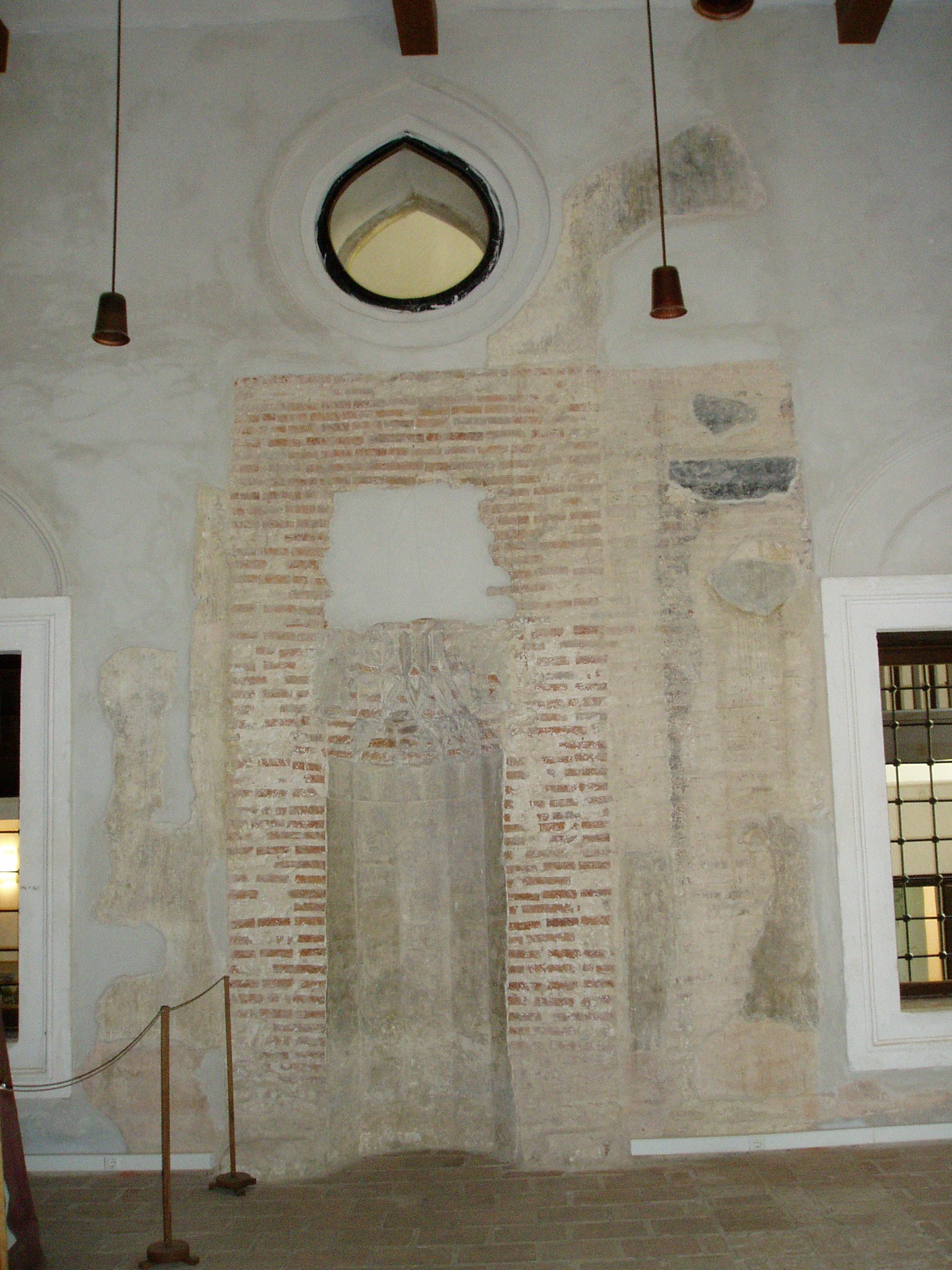 Nyilvános 1167 | 1969 | Szigetvár, Vár: dzsámi | A vár egyik központi épülete a Szulejmán dzsámi, amely a győztes szultán tiszteletére épült a XVI. században. A téglalap alaprajzú dzsámi Mekka felé néző oldalán látható a kőkeretes, egykor csempével borított, szalaktit boltozatú imafülke (mihrab). A dzsámit L alakú folyosó veszi körül, ennek délkeleti oldalán egy másik mihrab fülke található. Északnyugaton csatlakozik a dzsámihoz a szabályos tizennégyszög alakú minaret, amelynek nagy része a XVIII. században leomlott. A fénykép 2005 júniusában készült. Felh. irod.: Török műemlékek Magyarországon. = www.terebess.hu/keletkultinfo/minaret/szigetvar.html |
