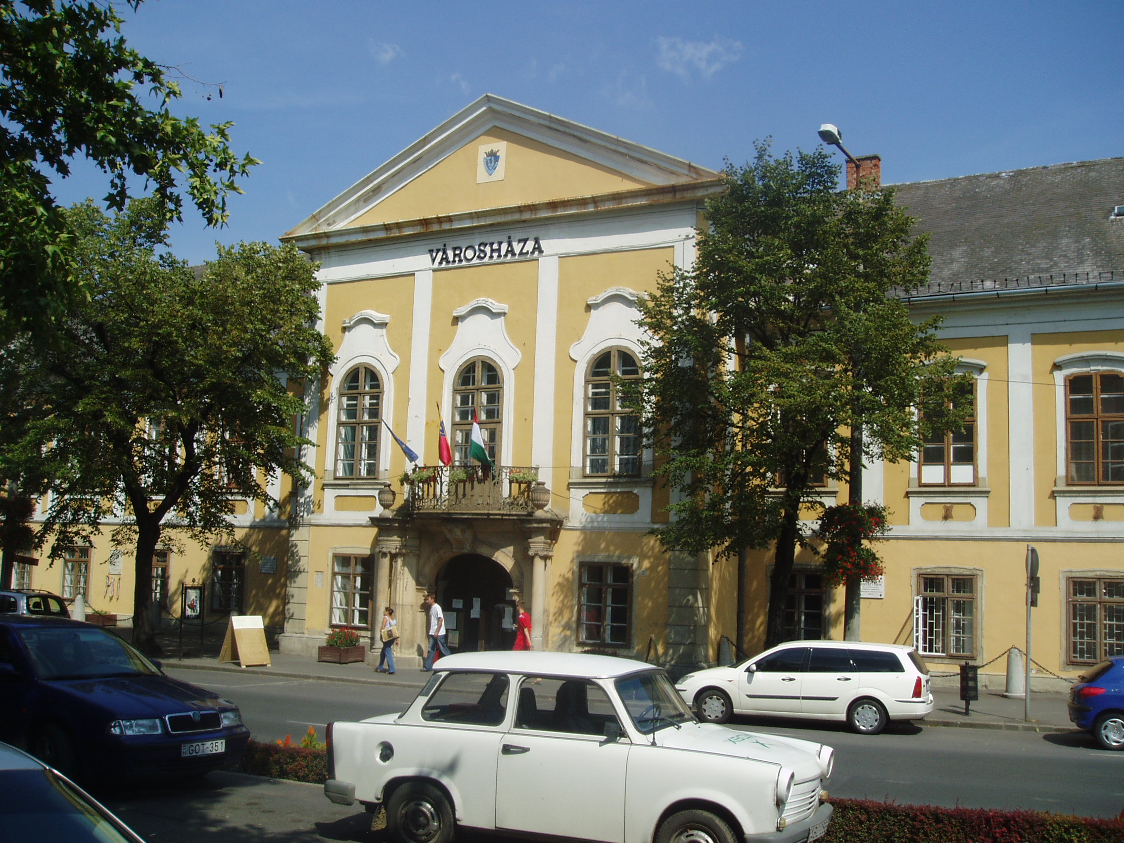 Nyilvános 980 | 1480 | Sátoraljaújhely, Kossuth tér 5. | A városháza (volt megyeháza) a fő tér hangulatát meghatározó barokk stílusban épült 1754-1768 között. Az olasz építészek által tervezett épület impozáns méreteivel az állandóság és a méltóság érzetét kelti. A főbejárat fölötti erkély mögötti díszteremben mondta a fiatal Kossuth első szónoklatát 1831-ben - a koleralázadás idején. A termet történelmi személyiségek arcképei, fából készített, festett karzat, megyecímer és emléktáblák díszítik. Az épület északi szárnyának emeletén helyezték el Zemplén vármegye levéltárát. Ennek berendezése műemlék: az országban szinte egyedülállóan őrzi a XVIII-XIX. századi "levelestárak" hangulatát. Itt dolgozott 1816 és 1831 között Kazinczy Ferenc, mint a vármegye főlevéltárnoka. A városháza hivatali időben, a levéltár bejelentkezéssel látogatható. A fénykép 2007 augusztusában készült. Felh. irod.: Látnivalók Borsod-Abaúj-Zemplén megyében. Miskolc, Well-PRess, 2003 www.satoraljaujhely.hu/nevezetessegek www.vendegvaro.hu |