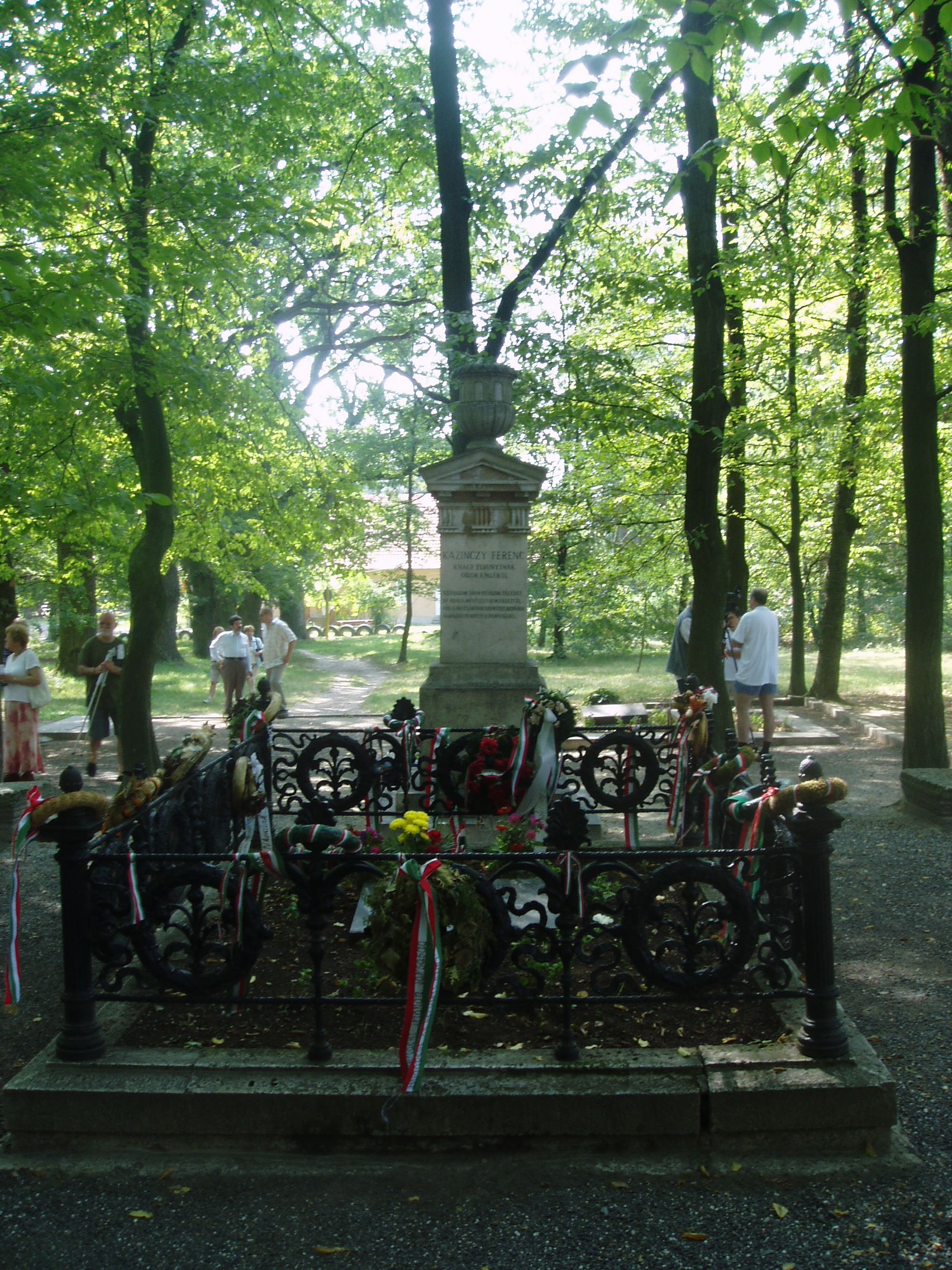 Nyilvános 1005 | 1536 | Széphalom: A Kazinczy család sírkertje - Kazinczy Ferenc sírja | A Kazinczy Emlékcsarnok parkja - Kazinczy Ferenc egykori kúriájának kertje - ma természetvédelmi terület. A mauzóleumból fasor vezet a Kazinczy család sírkertjébe. A sírkert helyét 1806-ban, első gyermeke, az egyéves korában elhunyt Iphigenia halálakor Kazinczy maga jelölte ki. Már akkor megírta barátainak, hogy felesége és ő is oda fognak temetkezni. Kazinczy Ferenc 1831. augusztus 22-én hunyt el széphalmi otthonában. Sírja már a reformkorban zarándokhely lett. Járt itt Petőfi Sándor is 1847. júliusában. XII. Úti levelében a következőképpen írt: "Újhelytől félórányira éjszak felé esik Széphalom, Kazinczy Ferenc egykori lakása. Nevét megérdemli, mert festői szépségű táj. Különben pedig szent hely, szent az öreg miatt, kinek ott van háza és sírhalma. Kötelessége volna minden emelkedettebb lelkű magyarnak életében legalább egyszer oda zarándokolni, mint a mohamedánnak Mekkába." A következő sorokban azonban keserűen felpanaszolta a temető elhagyatottságát: "És mégis jobb, ha nem mentek oda, mert nagyon erős lelkűeknek kell lennetek, hogy azon sírhalomnál meg ne esküdjetek, miszerint a hazáért soha, de soha egy lépést is tenni nem fogtok. Én voltam ott, láttam a pusztulás és a feledés legszívszaggatóbb, legelkeserítőbb képét, és letérdeltem a sírra és már fölemeltem a kezemet, hogy megesküdjem… ekkor szerencsémre vagy szerencsétlenségemre megfogott jó vagy rossz angyalom, és elvezetett onnan, minekelőtte kimondtam volna az esküt." Petőfi látogatása után mintegy két évtizeddel a Magyar Tudományos Akadémia megvásárolta a területet, s 1873-ra felépült a nagyszerű emlékcsarnok, s mára a teljes parkot védetté tették. Az emlékoszlop alatt nyugszik az író és felesége, az oszlop körül pedig négy gyermekük, két unokájuk, három dédunokájuk. és az a szolgálójuk, aki Kazinczyval együtt raboskodott Munkács várában. Legkisebbik fiuk, Lajos, Aradon szenvedett vértanúhalált a honvédsereg ezredeseként. A fénykép 2007 augusztusában készült. Felh. irod.: Látnivalók Borsod-Abaúj-Zemplén megyében. Miskolc, Well-PRess, 2004 www.vendegvaro.hu Busa Margit: Adalékok a Kazinczy család történetéhez. = Széphalom. A Kazinczy Ferenc Társaság Évkönyve 12. kötet, 2002 Petőfi Sándor: Úti levelek XII. = P. S.: Útirajzok. Úti jegyzetek. Úti levelek Kerényi Frigyeshez. Bp. Helikon, 1987 |