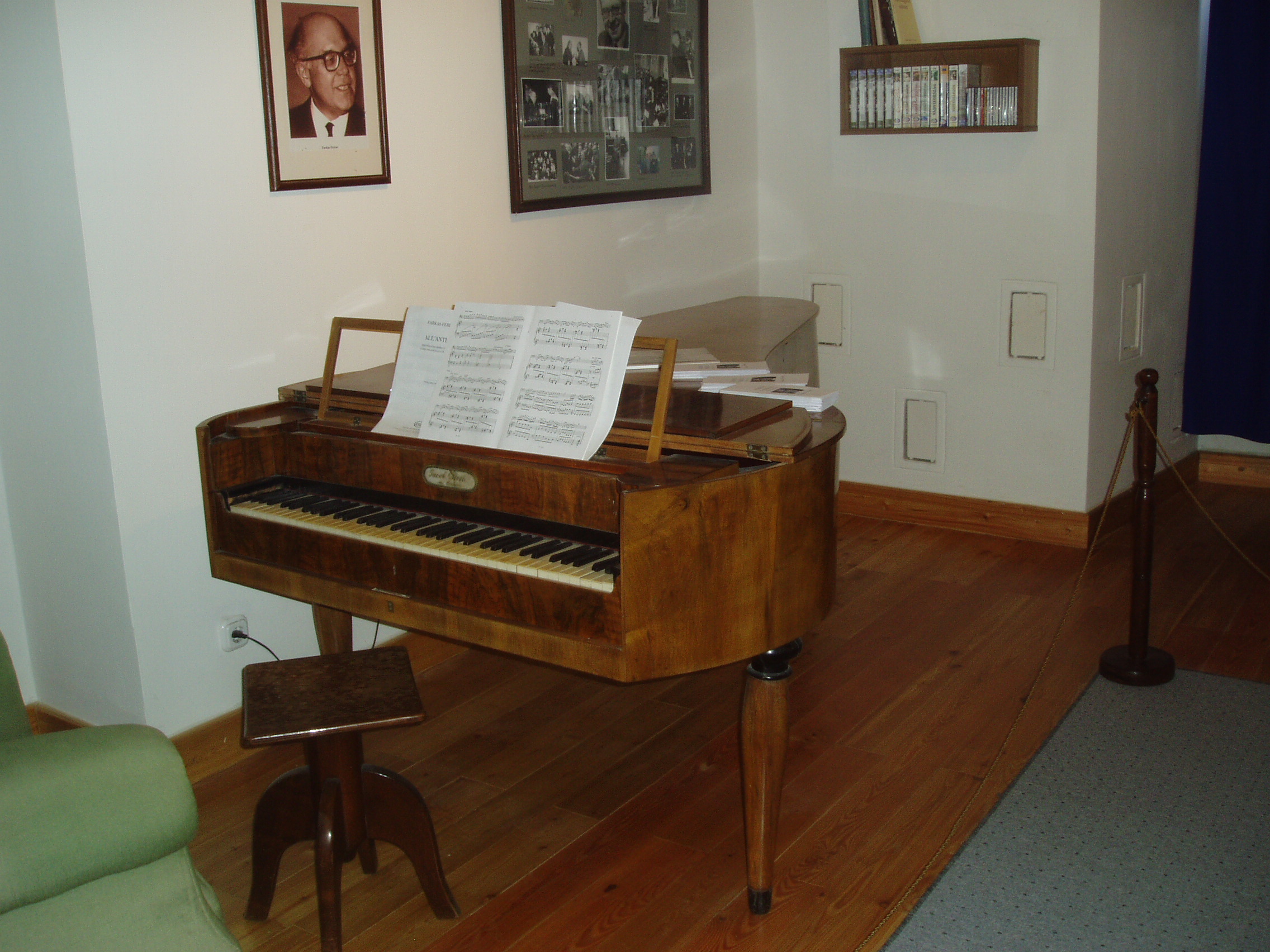 Nyilvános 958 | 1498 | Sárospatak, Szent Erzsébet utca 19. Rákóczi-vár, Múzsák temploma: Farkas Ferenc emlékszoba | A Rákóczi-vár területén áll az egykori trinitárius kolostor, a mai Múzsák Temploma. I. Rákóczi György és Lorántffy Zsuzsanna nagy építkezései sorában emelték, valamikor az 1620-as években. 1690 körül II. Rákóczi Ferenc és húga, Julianna a Patakon letelepített trinitárius szerzeteseknek ajándékozta, akik átalakították saját céljaikra. 1786-ban, a rend feloszlatása után ismét belső átépítések következtek és uradalmi tisztviselők otthona lett. Műemléki feltárást követően, amely folyamán kibontották a később emelt falakat, Makovecz Imre tervei alapján az épület az 1970-es évektől mint Borostyán Szálló és Étterem működött. A Rákóczi Ferenc Múzeum az 1990-es évek végén olyan kiállítóhely létrehozását tűzte ki itt célul, amely minden művészeti ágat befogad. Ennek jegyében nevezték el a Múzsák Templomának, s nyitották meg benne a nagykanizsai születésű Farkas Ferenc (1905–2000) zeneszerző emlékszobáját. Farkas Ferenc életrajzilag nem kötődött Patakhoz, mégis szinte második otthonának érezte a települést. A zeneszerzőt a régi magyar muzsika forrásaival való közvetlen megismerkedés szándéka vezette a Református Kollégium könyvtárába (lásd: Sárospatak, Rákóczi út 1.). 1947-es pataki tartózkodása idején zenésítette meg Weöres Sándor: A tündér (Bóbita) című versét, mely Gyümölcskosár című dalciklusának része, s a dal itt hangzott fel először. Többször tartózkodott 1949 és 1960 között a várban működött Alkotóotthonban is. Az emlékszoba számára fia, Farkas András, Svájcban élő karmester ajándékozott közel 200 darab tárgyat, ezekből állítottak ki egy bő válogatást. A fénykép 2007 augusztusában készült. Felh. irod.: Détsy Mihály: Sárospatak. Bp. Corvina, 1974 Látnivalók Borsod-Abaúj-Zemplén megyében. Miskolc, Well-PRess, 1995 www.sarospatak.hu/nevezetessegek www.hnm.hu/sarospatak/kiallitas/muzsakt.htm |