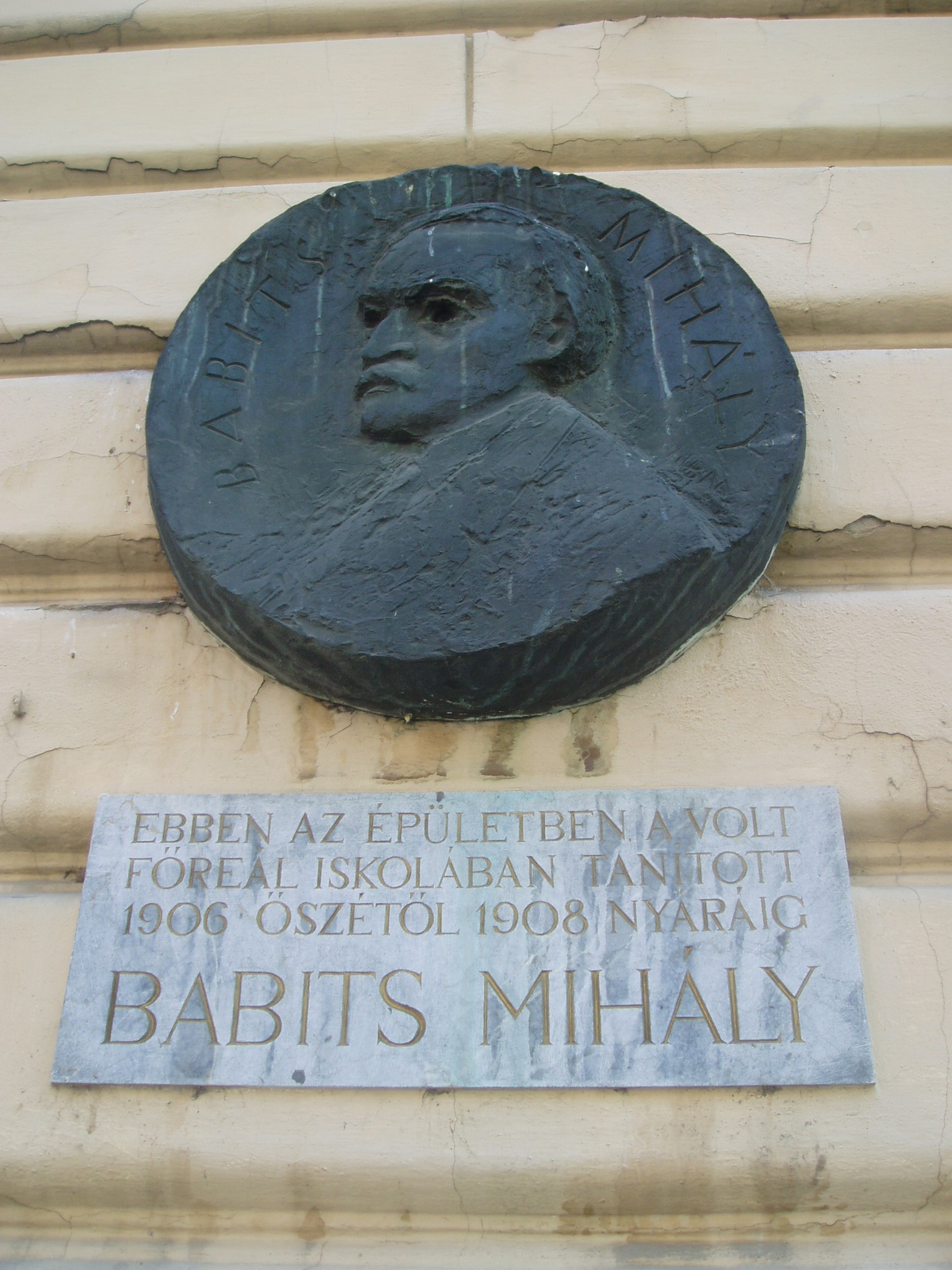 Nyilvános 941 | 1371 | Szeged, Horváth Mihály utca 2. | A mai Vedres István Építőipari Szakközépiskola főreáliskolának épült 1891-ben Meixner Károly és Ney Béla tervei szerint. Itt tanult 1898 és 1892 között Balázs Béla, 1905 és 1910 között Rákosi Mátyás. 1906 és 1908 között itt tanított Babits Mihály. A nagy költő domborművű emléktábláját Borsos Miklós készítette 1973-ban. A fénykép 2007 júliusában készült. Felh. irod.: Péter László: Szeged. Bp. Panoráma, 1981 |