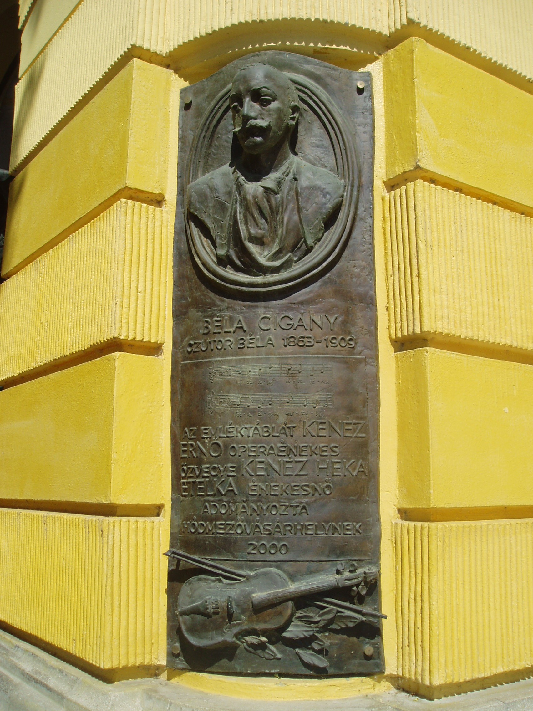 Nyilvános 1327 | 3013 | Hódmezővásárhely, Kossuth tér 3. | A Fekete Sas Szállodát a XX. század elején emelték eklektikus–neobarokk stílusban (1905-ben nyitották meg). A város fő terének egyik meghatározó épületét Pártos Gyula tervezte. Benne található a megye legimpozánsabb díszterme. A mai épület helyén már a XVIII. század elején a később „öreg” Sas-nak nevezett földszintes, majd 1830-ban emeletesre bővített kocsma és vendégfogadó állt. A XIX. század első felében itt tartották előadásaikat a városban vendégszereplő színtársulatok. 1827. júniusában Kilényi Dávid társulatának tagjaként fellépett itt Déryné Széppataki Róza is. Szintén még az öreg Sasban muzsikált a XIX. század utolsó éveiben 12 tagú bandája élén Czutor Béla (1863—1909). "Béla cigány" a régi Vásárhely zenei életének jellegzetes figurája volt. Muzsikus cigány családba született őstehetség, aki ugyan csak három osztályt járt, de divatos üdülőhelyeken, Tátrafüreden, a Margitszigeten, Herkulesfürdőn, Brassóban lépett fel. Dankó Pista dalainak egyik legavatottabb tolmácsolója volt. Dankó — Pósa Lajos versére — nótát is írt zenéjének kiváló interpretálójáról: "Vásárhelyi sétatéren Béla cigány muzsikál… " A megénekelt sétatér híres fasorának eleje a mai épület keleti oldalánál ma is látható. A ma rendezvényházként működő, gyönyörűen felújított épület fasor felőli sarkán márványtábla őrzi Béla cigány emlékét. A fénykép 2007 júliusában készült. Felh. irod.: Barangolások Csongrád megyében. Miskolc, Well-PRess, 1997 /Vendégváró/ Arató László - Batyi Zoltán: Hódmezővásárhely az alföldi művészváros. Hódmezővásárhely, 2004 Kőszegfalvi Ferenc: Hódmezővásárhelyi évfordulók. = Honismeret 1983. 4. |