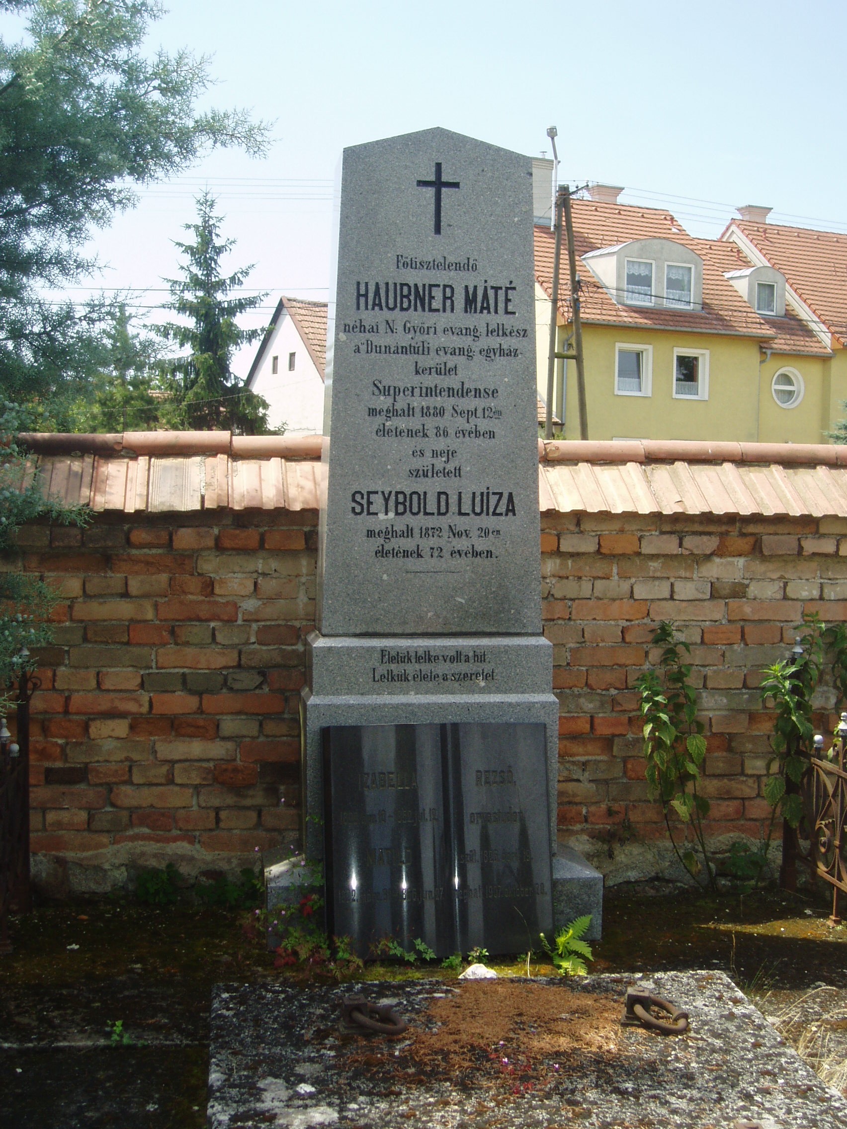 Nyilvános 1121 | 4069 | Sopron, Balfi út. Evangélikus temető. Haubner Máté sírja | A soproni evangélikusok 1674-ben nyitották meg temetőjüket, korábban a katolikusokkal együtt a Szent Mihály temetőbe temetkeztek. Haubner Máté (1794-1880) győri evangélikus lelkész volt. 1848/49-ben játszott szerepe miatt két évet Kufsteinben raboskodott. Élete alkonyát Sopronban töltötte. Vagyonát a dunántúli evangélikus egyházkerületi lelkész- és tanítóözvegyek és árvák gyámolítására hagyományozta. A fénykép 2008 júniusában készült. Felh. irod.: A Pallas nagy lexikona |