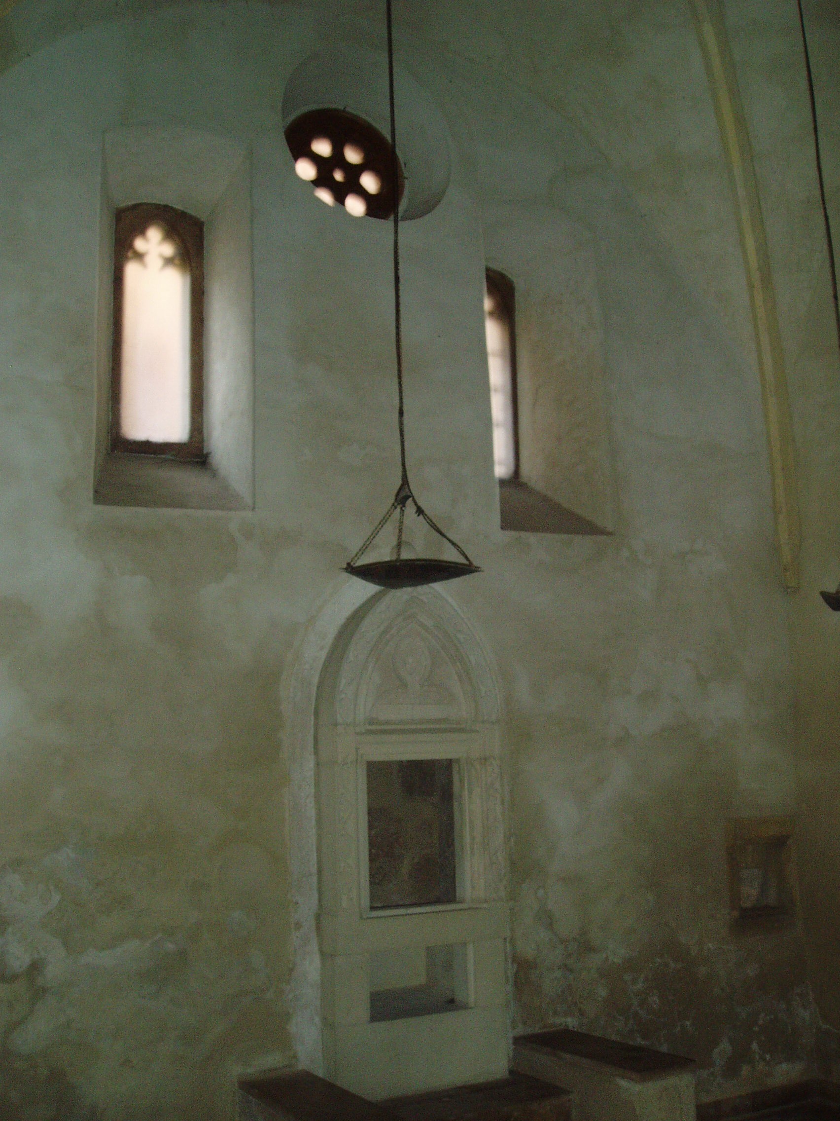 Nyilvános 950 | 1285 | Sopron, Új utca 11. | A középkori eredetű lakóház középkori zsinagógát rejt. Az első zsidók a XIII. században települtek be Sopronba. 1370 körül épült ez az imaházuk, egy Izrael nevű bankár magánzsinagógájaként. A többször átalakított épület egyszerű barokk homlokzatának bal oldalán nyílik a kosáríves kapuzat, amelyen át beléphetünk a középkori templomba: elsőként egy utcára nyíló, boltozatos terembe, majd innét magába a zsinagógába. A két emelet magas termet kétszakaszos keresztboltozat fedi s gótikus kőrácsú ablakokon át kap fényt. A keleti falba mélyül az Áron-fülke, azaz a frigyszekrény. A jobbra lévő kis, kőkeretes fülkében valószínűleg kegyszereket tartottak. A kép 2008 júniusában készült. Felh. irod.: Czellár Katalin: Sopron. 3. jav. kiad. Bp. Panoráma, 2000 |