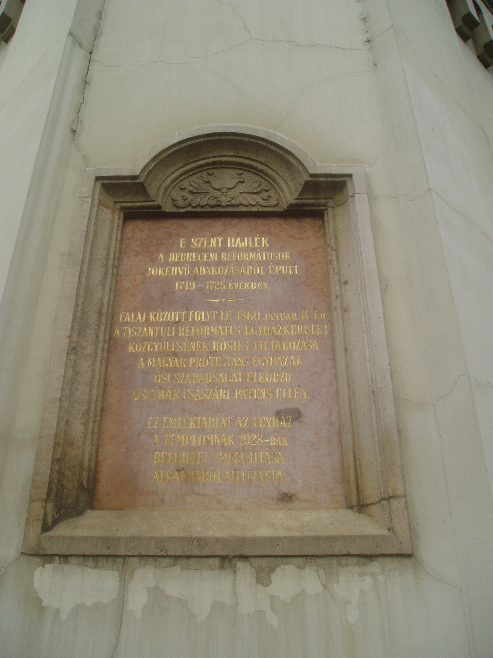 Nyilvános 1123 | 2176 | Debrecen, Révész tér: Kistemplom | Debrecen városközpontjában, a Piac utca és a Révész tér sarkán áll a nagy múltú épület. Az utca mai szintjénél kissé lejjebb épült templomhoz magas, bástyafok koronájú torony csatlakozik. A Kistemplom Debrecen legöregebb egyházi épülete. Helyén már a XV. században imaház állott, melynek 1719-es leégése után, közadakozásból építették meg két év alatt a ma is itt álló épületet. Mai formáját többszöri átépítés után 1876-ban kapta. Tornyát eredetileg barokk hagymasisak koronázta, amely 1907-ben egy szélvihar áldozata lett. Ekkor látták el a bástyás pártázattal, amelyről azóta Csonkatemplomnak is nevezik. A templom belső kiképzése - csakúgy, mint külső megjelenése - puritán egyszerűségű. A berendezési tárgyak közül figyelemreméltó az 1790-ben készült katedra. A középső bejárat mellett emléktábla idézi az 1860-as év emlékét, amikor a református egyházak hatszáz küldötte tiltakozott itt ünnepélyesen a Habsburg-abszolutizmus egyik jogsértő intézkedése ellen, amely eltörölte a protestáns egyházak önkormányzatát. A császári pátens elleni tiltakozó gyűlést a császásri helytartó ugyan betiltotta, de a küldöttek mégis összeültek. A helytartó a helyszínen megjelenve próbálta megakadályozni a tanácskozást: "A gyűlést őfelsége, a császár nevében megtiltom!" Ekkor felemelkedett Debrecen püspöke, s a következőket mondta: "A gyűlést őfelsége, az Isten nevében megnyitom!" A protestáns küldöttek egyöntetű és határozott fellépésének hatására a kormány arra kényszerült, hogy visszavonja alkotmánysértő rendeletét. Felh. irod.: Papp Antal: Debrecen. Bp. Panoráma, 1976 www.debrecen.hu |