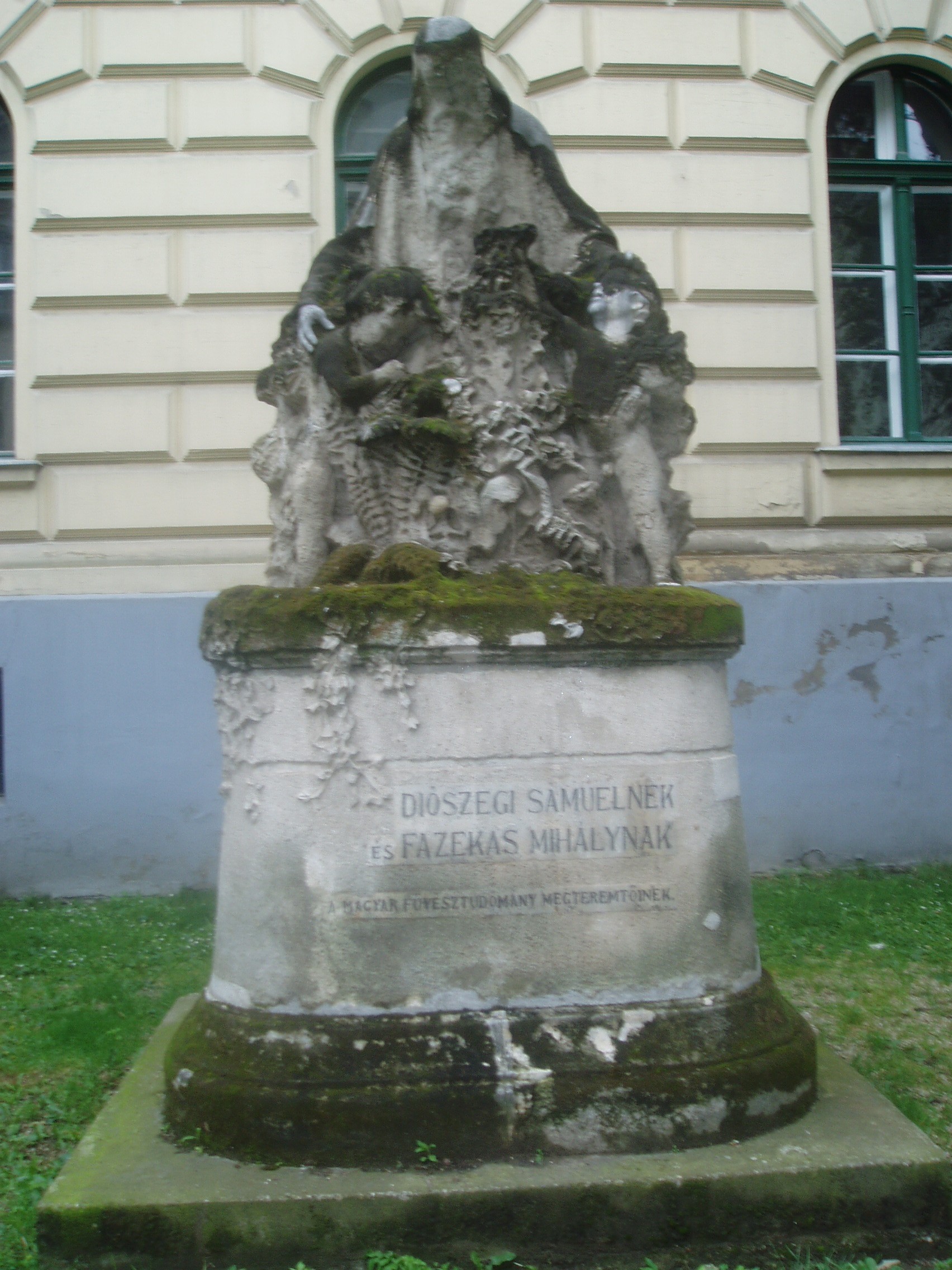 Nyilvános 1272 | 2586 | Debrecen, Perényi utca: Füvészkert szobor | A Perényi utcán álló Füvészkert-szobor voltaképpen Diószegi Sámuel és Fazekas Mihály (lásd még: Debrecen, Piac u. 68.) emlékműve. A szoborkompozíció, mely Somogyi Sándor debreceni szobrász alkotása, nem személyükben ábrázolja a két kiváló botanikust. A romantikus szimbolika szerint alkotott emlékmű fő alakja az áldást osztó Természet egy idős ember képében. Két gyermeket ölel magához, akik a világ titkain ámuló és az azt kutató emberiség kettős arcát jelképezi. Az emlékművet 1907-ben avatták fel, az első, Linné rendszere alapján írt magyar nyelvű Füvészkönyv megjelenésének 200. évfordulója alkalmából. Fazekas Mihály és Diószegi Sámuel tevékenységének köszönhetően készült el Debrecenben az első füvészkert, amelyet 1807-ben létesítettek a mai Déri Múzeum helyén. Emlékét ma már csak a Füvészkert utca őrzi. Az új füvészkertet a Nagyerdő területén hozták létre, ott is áll egy Diószegi-Fazekas emlékmű, amely már a két tudós valóságos alakját ábrázolja. Felh. irod.: Kovács Gergelyné: Debrecen. Bp. Panoráma, 1981 www.debrecen.hu |