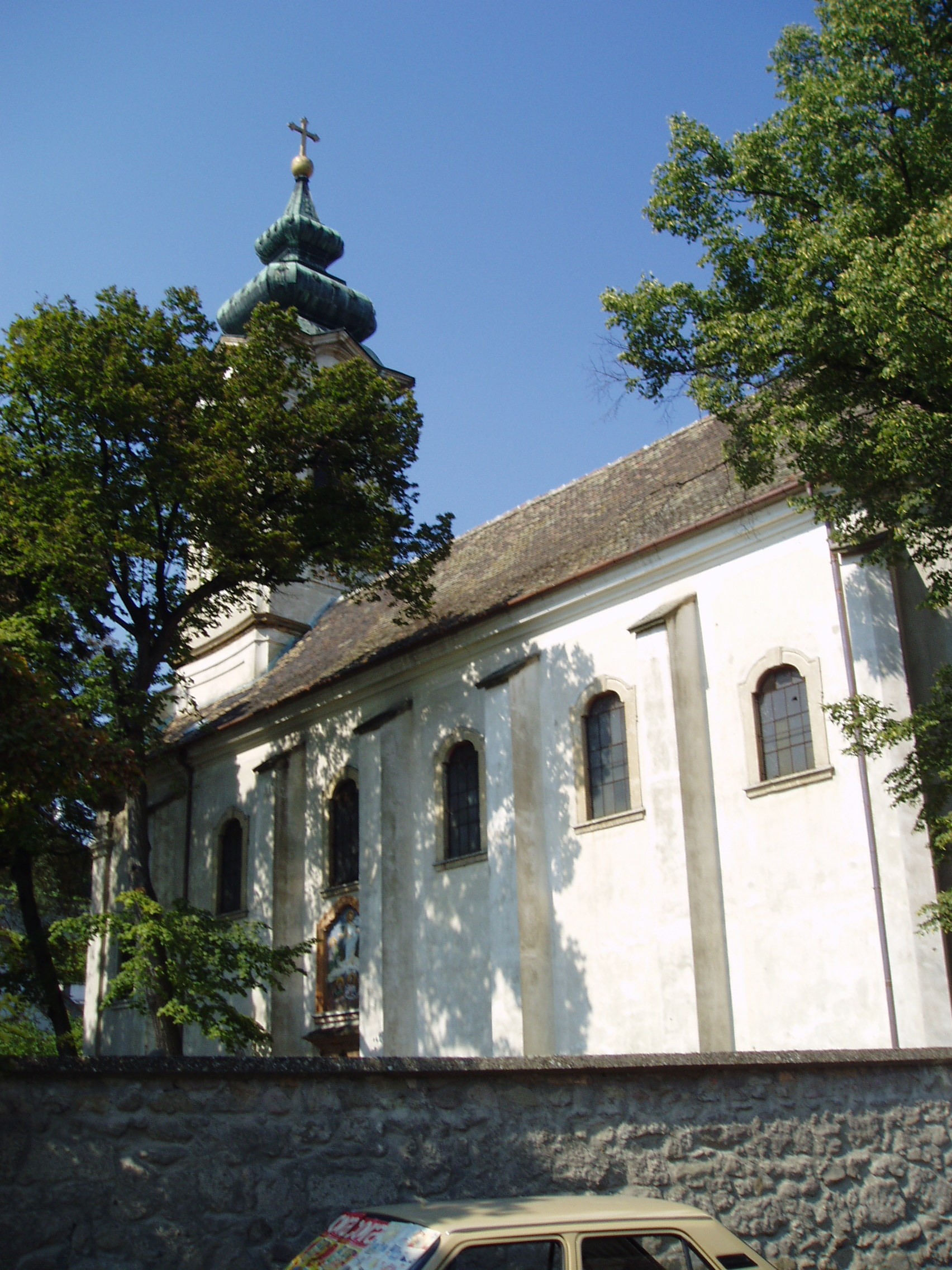 Nyilvános 1104 | 2028 | Szentendre, Vujicsics tér: Preobrazsenszka-templom | A középtornyos, barokk Preobrazsenszka-templomot a Boszniából érkezett szerbek építették 1741-1746 között. Klasszicizáló díszítőelemei valószínűleg 1770 után - egy nagyobb felújítás és átalakítás révén - készültek. Toronnyal 1852-ben koronázták meg az épületet. A templomot vastag kőkerítés veszi körül. A kerítésfal korinthoszi oszlopokkal szegélyezett, díszes, kovácsoltvas kapuját a pesti szerb temploméról mintázták, 1803 és 1806 között Olhauser József helybéli lakatosmester készítette. A templom az ortodox (görögkeleti) egyházi műemlékek között kiemelkedő helyet foglal el. Belsejében nagyrészt megmaradt a XVIII. század második felében és a XIX. század elején készült berendezés. Jelentős képzőművészeti érték a templom ikonosztáza, amely a legszebb hazai ikonfalak egyike, az első orosz-ukrán típus szerint épült képfal. A templom körül augusztus 19-én tartják Szentendre legnevezetesebb szerb búcsúját, amellyel Jézus Tábor-hegyi színeváltozásáról emlékeznek meg. Ezeken búcsúkon rendszeresen megjelent és muzsikált Vujicsics Tihamér, aki 1979-ben - Damaszkusz felé tartva - repülőszerencsétlenség áldozata lett. A szerencsétlenség éppen augusztus 19-én vetett véget a szerb származású zeneszerző életének. Rá emlékezve nevezték el róla 2000-ben a templom terét és állították fel emlékkútját (lásd: következő kép). A fénykép 2005 szeptemberében készült. Felh. irod.: Szentendre. Szerk. Sándyné Wolf Katalin. Bp. Panoráma, 1985 www.templom.hu www.vendegvaro.hu |