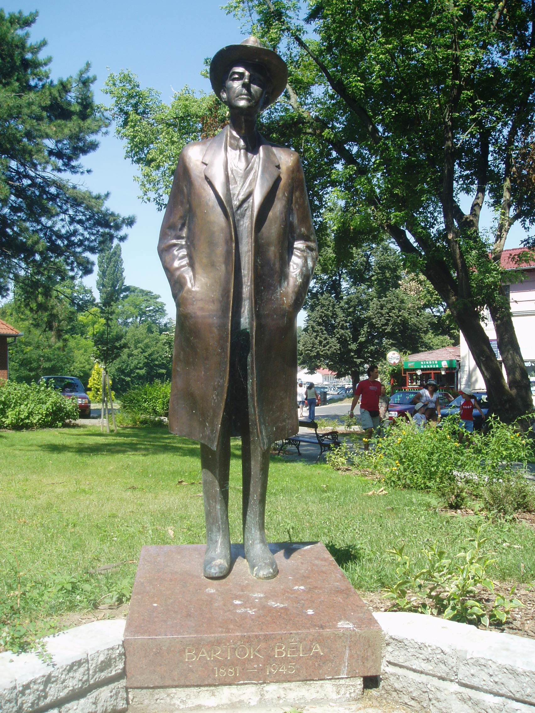 Nyilvános 1086 | 1777 | Siófok, Mártirok útja 5. | A Siófoki Művészeti Iskola (azelőtt Zeneiskola) épülete közelében, a Szent Miklós parkban áll Varga Imre siófoki születésű szobrászművész egészalakos Bartók Béla szobra. A fénykép 2006 júliusában készült. |