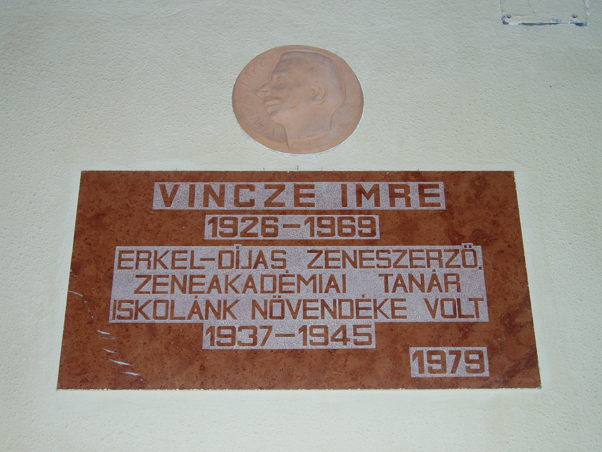Nyilvános 1625 | 3248 | Rövid leírás | Teljes leírás (846 B) | Tata, Tanoda tér 5. Eötvös József Gimnázium: Vincze Imre emléktáblája A tatai gimnáziumot 1765-ben gróf Esterházy Miklós alapította, s vezetésére a piarista tanítórendet kérte fel. Az iskola kezdetben a közeli majki kamalduli szerzetesek többször is átalakított gazdasági épületeiben működött. A jelenlegi iskolaépületet a XX. század elején emelték, 1912-ben kezdődött meg benne a tanítás. Az első emeleti folyosó falán neves egykori tanárok és diákok emléktábláit helyezték el. Vincze Imre (1926-1969) zeneszerző 1937-1945 között volt az iskola diákja. A fénykép 2005. júliusában készült. Felh. irod.: www.eotvos-tata.sulinet.hu Wehner Tibor: Tatai szobrok, emlékművek, emléktáblák. Tata, 1980 |