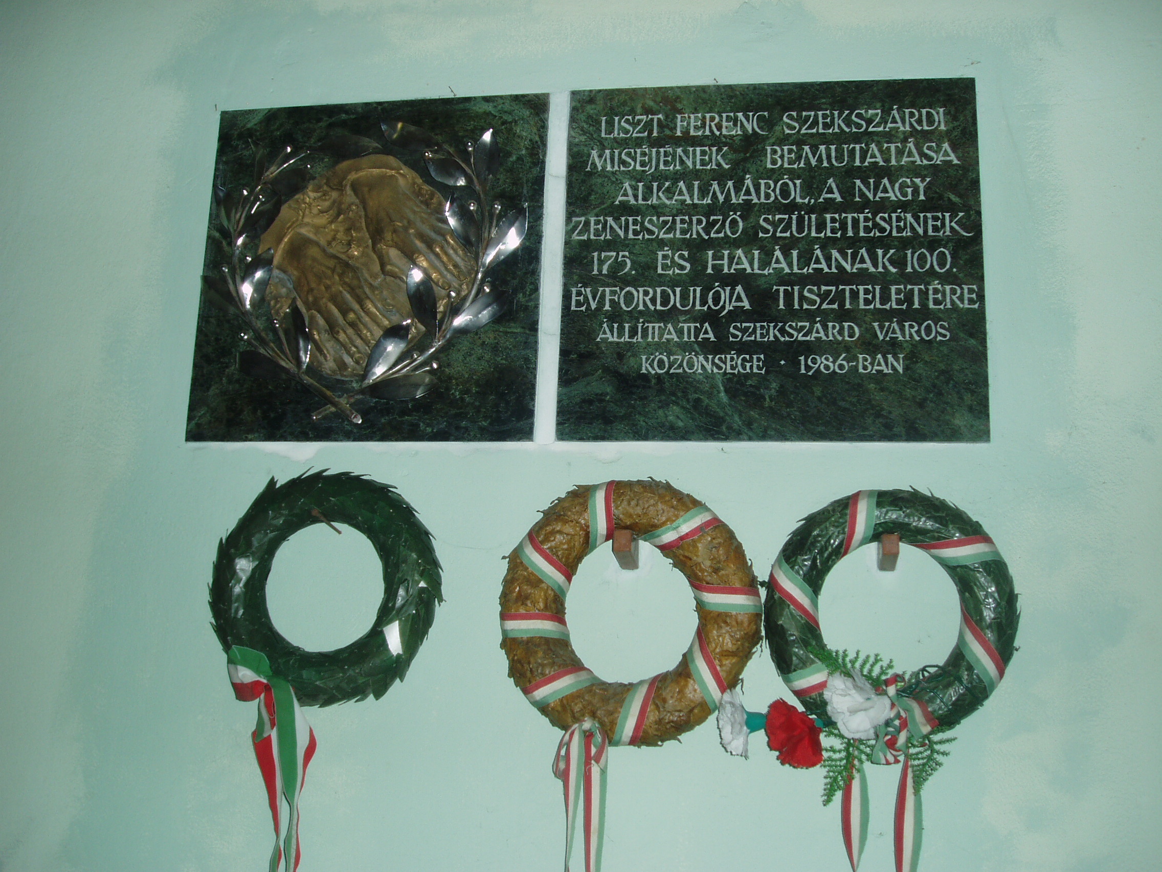 Nyilvános 1114 | 1620 | Szekszárd, Pázmány tér 6. Újvárosi templom | A neogót stílusú római katolikus templom Hrabovszky Péterné Kassay Anna alapítványából épült 1864 és 1868 között. Terveit a grazi Hans Petschnigg készítette. Az alapítvány ügyeit Augusz Antal vezette, ő felügyelte az építkezést és megnyerte személyes jó barátját, a szekszárdi házában (lásd: Szekszárd, Széchenyi u. 36–38.) több ízben vendégeskedő Liszt Ferencet, hogy a templom felszentelésére misét írjon. A Szekszárdi mise ősbemutatójára sok hátráltató körülmény miatt végül Jénában került sor 1872-ben, ezért a szakirodalomban Jénai mise néven is említik. A szekszárdi bemutatóra csak 1978-ban került sor e falak között, a Liszt Ferenc Társaság szekszárdi csoportjának kezdeményezésére, amikor a mű vegyeskari változata hangzott fel. Eredeti, férfikari változata 1986-ban, Liszt születésének 175. és halálának 100. évfordulója alkalmából szólalt meg először a templomban. Liszt és a Szekszárdi mise emlékét két dombormű és mellettük emléktábla is megörökíti a templomban. A Szekszárdi misének irodalmi emléket állított a városban született Baka István Graves–díjas író 1984-ben megjelent kisregényében, melynek főhőse Séner János, a Szekszárdi Dalárda egyik alapító tagja. A "Szekszárdi mise" című kisregény cselekménye e mű partitúrája körül forog. Utolsó jelenete itt, az Újvárosi templomban játszódik. A fénykép 2006 júliusában készült. Felh. irod.: Töttős Gábor: Szekszárd. Bp. Panoráma, 1986 Töttős Gábor: Irodalmi séták Szekszárdon. [s.l.] 1985 Hadnagy Albert: Liszt szekszárdi kapcsolatai. Szekszárd, Tolna Megyei Tanács levéltára, 1969 |