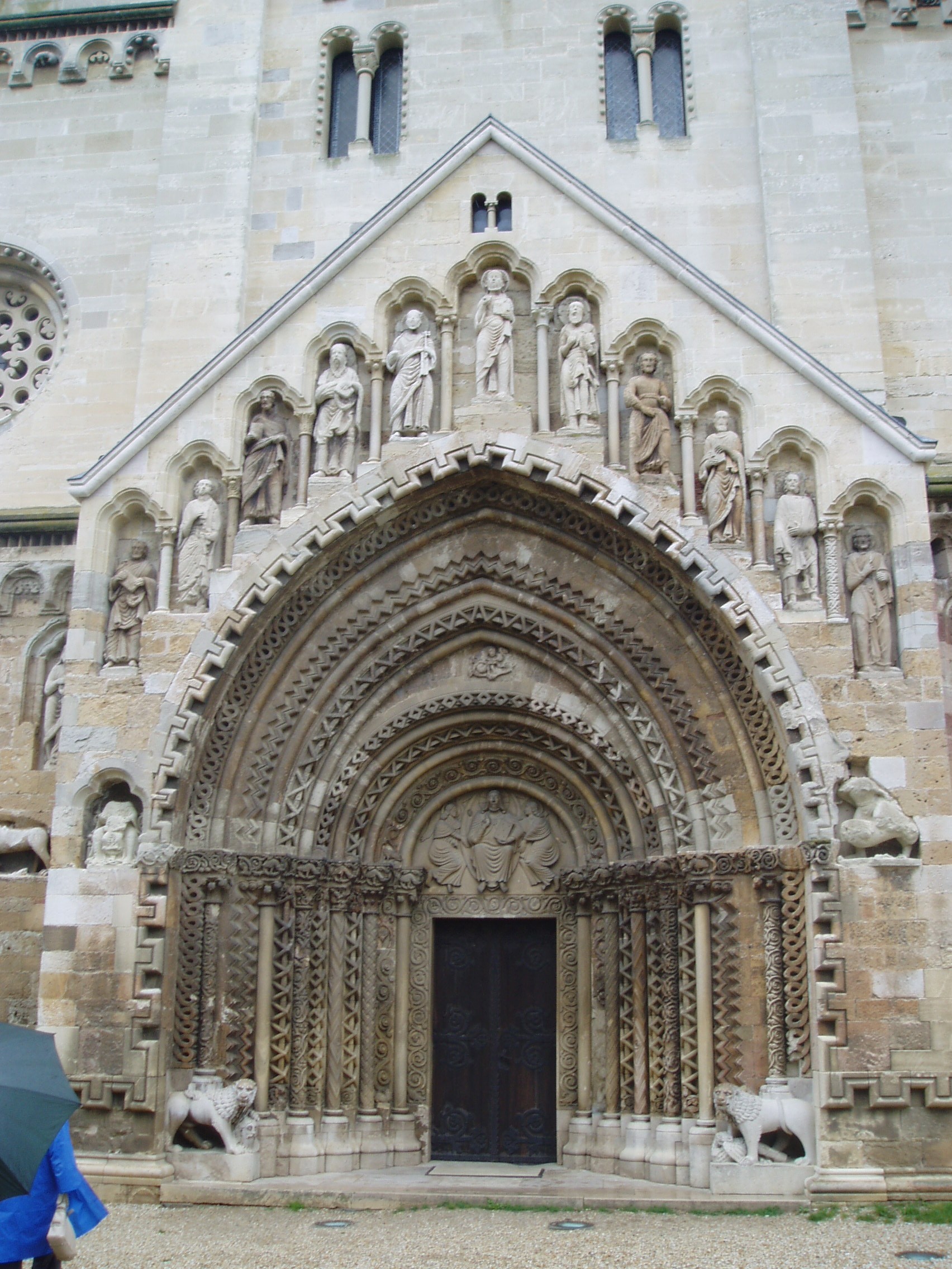 Nyilvános 1660 | 4265 | Ják, Templom | A jáki apátsági templom, az egykori jáki bencés apátság monumentális bazilikája a magyarországi román stílusú építészet kiemelkedő, szinte szimbolikus alkotása. A hazai középkori nemzetségi monostorok egyedülálló épségben fennmaradt képviselője, mely művészi gazdagságával, a táj képébe illeszkedő mesteri elhelyezésével hívja fel magára a figyelmet. A templomot az 1220-as években Jáki Nagy Márton alapította, az első olyan nemes (nobilis), akit oklevélben is már így említenek. Gazdagságáról és hatalmáról is tanúskodik, hogy birtokainak középpontjában kora egyik legmonumentálisabb templomát kezdte el építtetni, hogy majd nevének és nemzetségének méltó emlékeként évszázadokig álljon és uralkodjon a táj felett. A monostor apátja már 1223-tól szerepel az oklevelekben és ismert a templom felszentelésének időpontja is, amely a tatárjárás miatt későbbre húzódott: 1256. május 2. Építtetője a templomot Szent Györgynek, a bizánci egyház lovagszentjének tiszteletére szenteltette fel, akinek képét a főoltár mögötti falra is felfestették. A templom története szorosan kapcsolódik a mellette épült egykori kolostor történetéhez. Tulajdonosai többször is változtak: 1455-ben Elderbach Bertold kapta, majd fia végrendeletileg Bakócz Tamásra hagyta, majd Bakócz örököseié, az Erdődy családé volt. A kolostor életében sorsdöntő volt az 1532-es esztendő. Ekkor a Kőszeget ostromló török a kolostort is megtámadta és a templommal együtt súlyosan megrongálta. A török elvonulása után a szerzetesek még valószínűleg visszatértek, de 1562 után már bizonyosan megszűnt minden kolostori élet, s hamarosan maga az épület is elpusztult. A templom csodálatos módon illik a környező tájba, mesteri elhelyezése miatt már 10-15 km-ről jól látható, mintegy uralja a vidéket. Tömbszerű, zömök sziluettje már messziről felhívja magára a figyelmet. A templom bélletes főkapujának látványa első látásra is ámulattal tölti el a szemlélőt, az egykori építőmester úgyszólván minden díszt ide összpontosított. Mindent elborít a változatos és gazdag díszítés, melyet a geometriai mintákat felhasználó ún. normann díszítőstílus jellemez. A kapuépítmény homlokzatát a magyarországi román stílusú szobrászat ékkövei, Krisztus és a 12 apostol lépcsőzetesen emelkedő életnagyságú szobrai díszítik. Ma már csak másolatok láthatók itt; az eredeti szobrokat a szombathelyi Savaria Múzeumban őrzik (lásd: Szombathely, Kisfaludy u. 9.). A fénykép 2006 júniusában készült. Felh. irod.: Dercsényi Dezső: A jáki templom. Bp. Corvina, 1979 |
