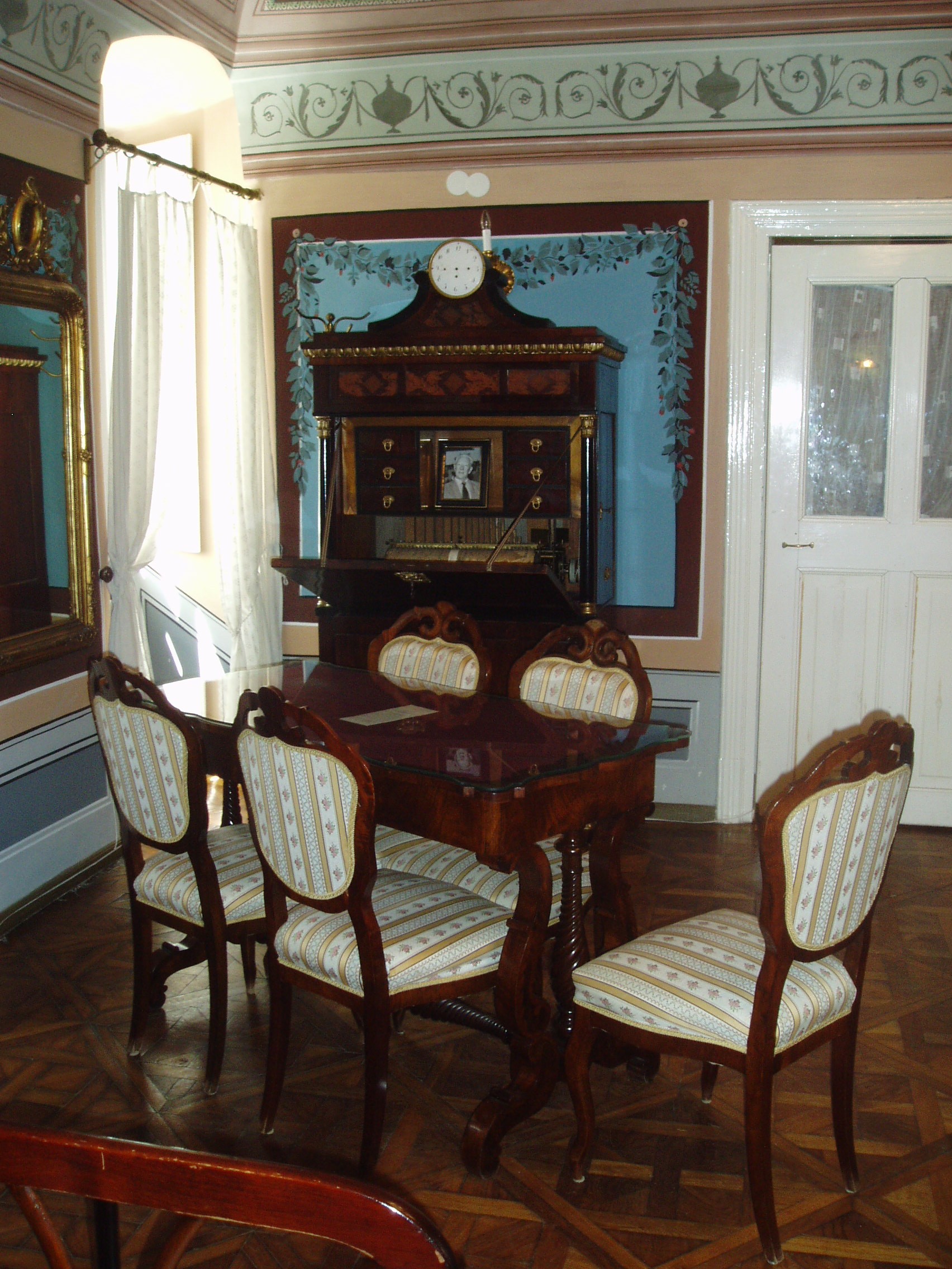 Nyilvános 1559 | 3107 | Rövid leírás | Teljes leírás (1.04 KB) | Gyula, Erkel tér 1. Százéves cukrászda 1801-ben, a nagy tűzvész után épült az egyemeletes, L alakú, műemlékké nyilvánított ház. Erkel térre néző oldala copf- és empire stílusú, a Jókai utca felőli részen klasszicista elemek is felfedezhetők. Műemléki megítélés szerint "korát és színvonalát tekintve a Dél-Alföld legértékesebb emeletes polgárháza". Földszintjén található a megye legrégibb, s az ország egyik legnevezetesebb műemléki cukrászdája, mely bizonyíthatóan legalább 1840 óta fennáll. XIX. századi tulajdonosáról eredetileg Reinhardt-cukrászdának nevezték. A cukrászda elkerülte az államosítást, megőrizték régi berendezését, s a helyiségek reformkori hangulatát. Az udvar felőli folyosón az egykori szabadkéményes cukrászműhely felszereléseit, eszközeit bemutató kiállítás látható. A fénykép 2007 júliusában készült. Felh. irod.: Czeglédi Imre: Gyula útikalauz. 2. bőv. kiad. Gyula, 1995 |