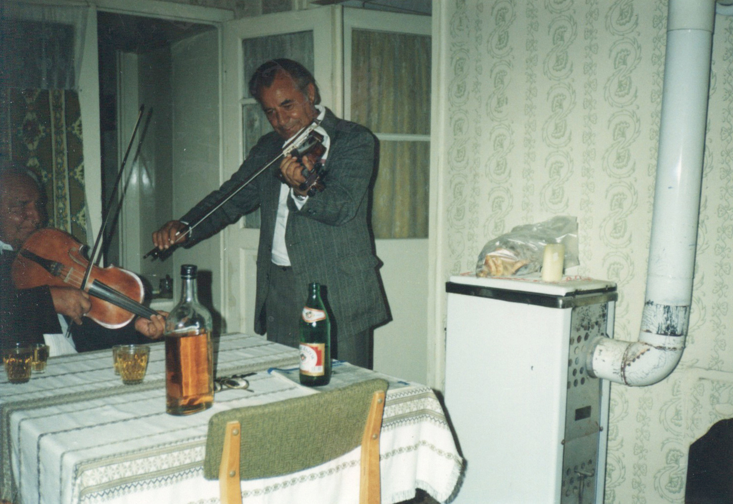 1980-85. Szabadics József háza. Névnapján hegedültek. Középen Horváth István.