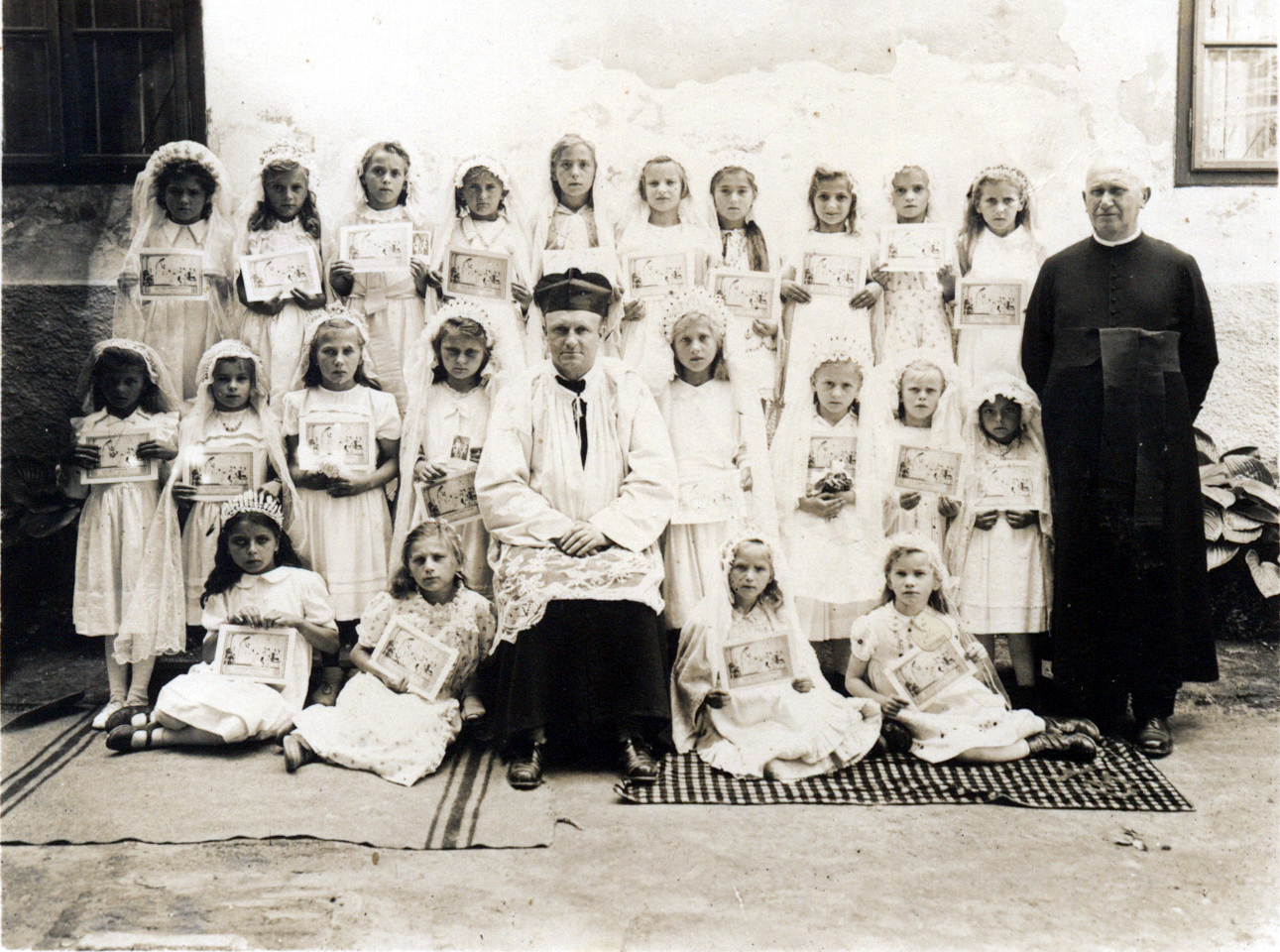 1949. Elsőáldozók. A kép jobboldali szélén látható pap Láber Miklós.