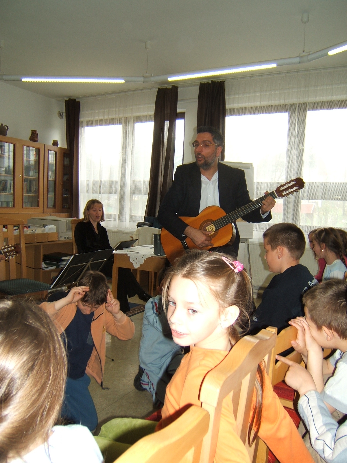 Nyilvános 1187 | 3050 | Költészet napja műsor a zalakarosi könyvtárban 2006. április 11-én. Vendégünk volt a Kardos Banda együttes, aki a kisiskolásoknak és a nagyoknak külön összeálított \"Költészet - minden formában régiektől, maiaktól\" című műsorát adta elő. | |