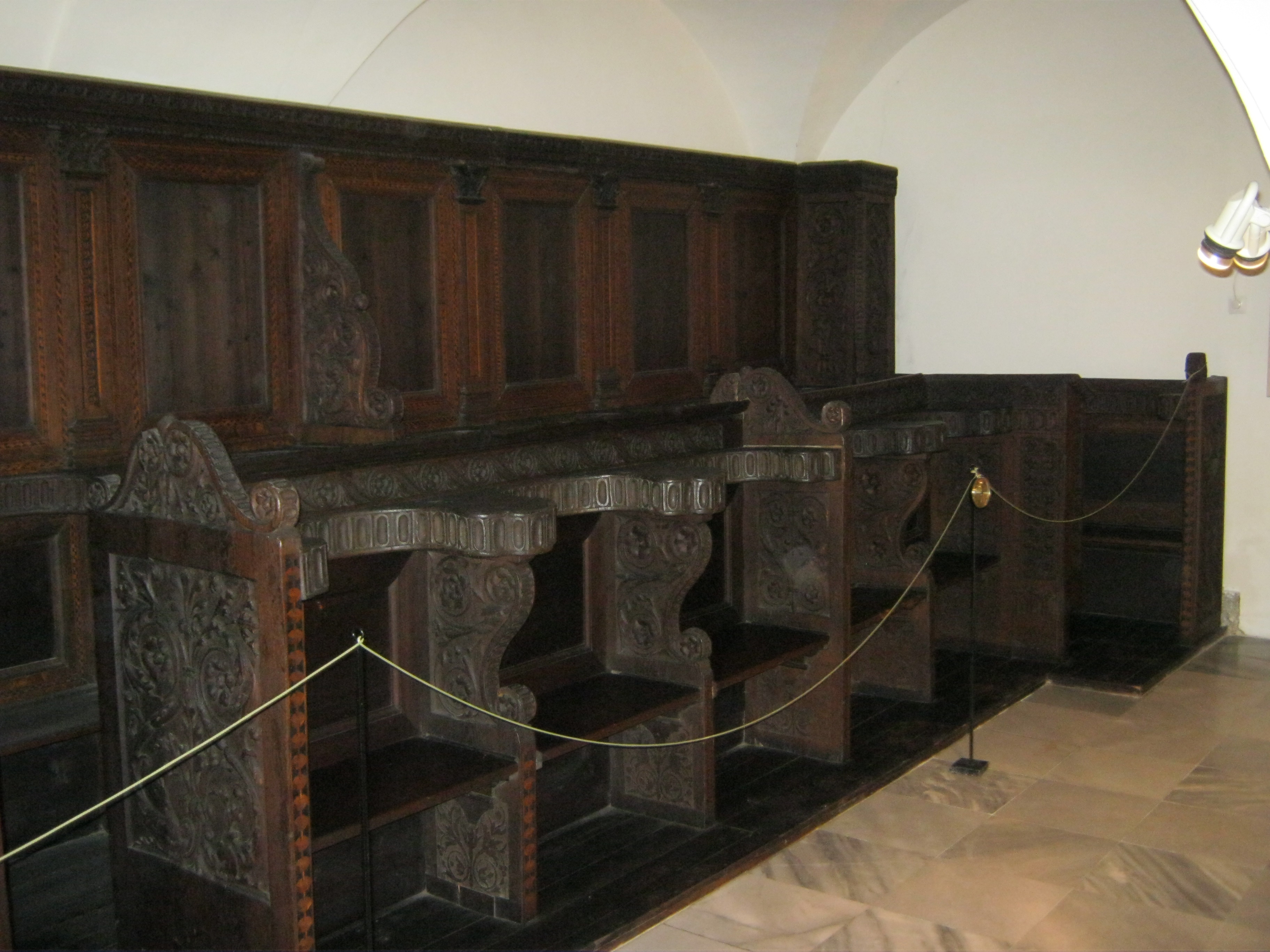Nyilvános 1152 | 1924 | Nyírbátor, Károlyi utca 21. Báthori István Múzeum | A minorita kolostor épültét 1959-ben kapta meg a múzeum. Első igazgatója, Szalontai Barnabás áldozatos munkája nyomán két év múlva már meg is nyílhatott benne az első kiállítás. A képen a nevezetes Nyírbátori stallum egy része látható. A ferences-minorita templom (lásd: Nyírbátor, Károlyi u. 19.) részére 1511-ben készült el a Báthori család kegyúri bőkezűségéből két 25-25 üléses imapad (stallum), amelyek a magyarországi reneszánsz fa-faragványos bútorok legszebb, európai rangú darabjai. Készítőjük Roberto Marone firenzei fa-faragó és intarziátor. A szentély oldalfalai mentén állottak, de a pusztulásnak indult kolostortemplomból átszállították őket a református templomba (lásd: Nyírbátor, Báthori u. 24.). Az 1930-as évek elejétől a stallum mennyezetes sora a Magyar Nemzeti Múzeumban, a másik része 1968-tól a nyírbátori múzeumban látható. Felh. irod.: Látnivalók Szabolcs-Szatmár-Bereg megyében. Miskolc, Well-PRess, 1999 www.nyirbim.hu A fénykép 2010 augusztus elején készült. |