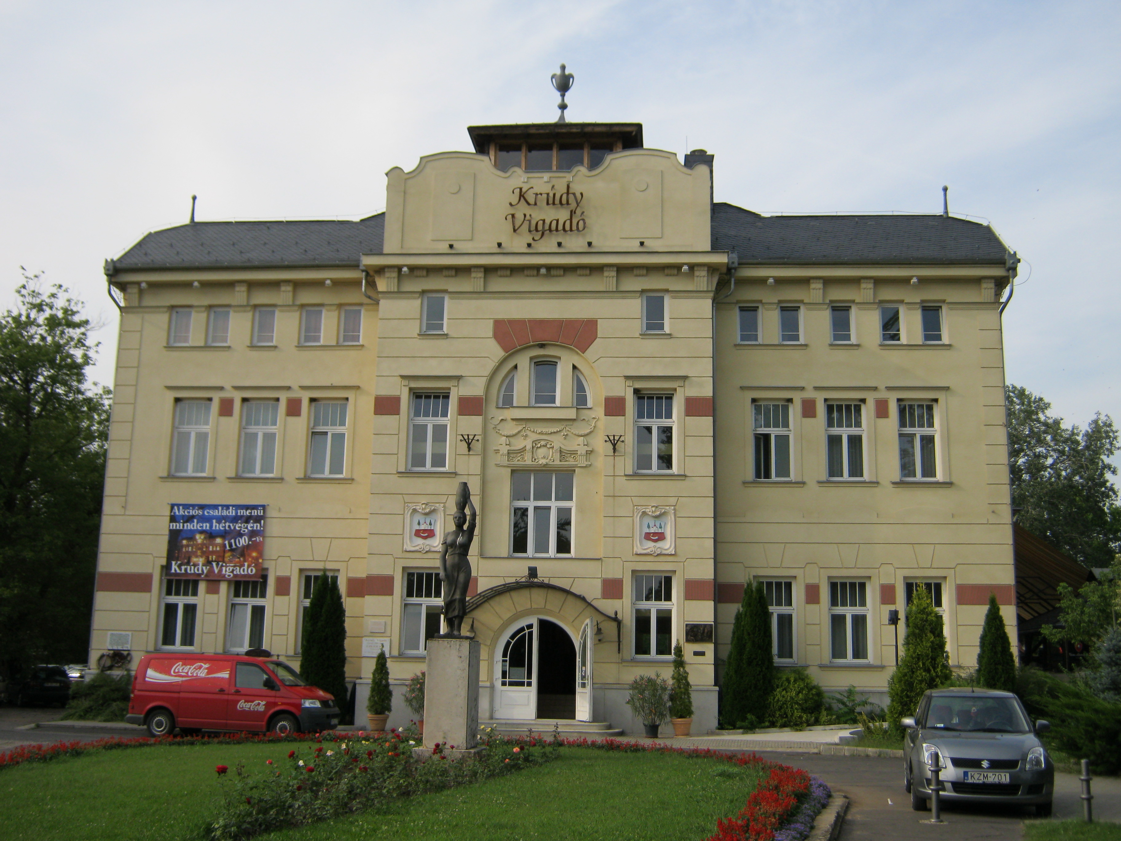 Nyilvános 1025 | 1609 | Nyíregyháza-Sóstó, Krúdy-Vigadó | A műemlékké nyilvánított Krúdy Vigadó Sóstófürdő központjában emelkedik. A Fürdőházat is tervező Pazár István tervei szerint 1911-ben épült szecessziós stílusban. A Vigadó egykoron a nyíri dzsentrik hatalmas és fényűző báljainak, mulatozásainak színhelyéül szolgált. Krúdy, aki személyes tapasztalatokkal rendelkezett e téren, így festette le az akkori világot: "Különösen volt itt egy nevezetes társaság, amely nyíregyházi és Szabolcs megyei urakból verődött össze, amely a Sóstó kultiválását tűzte ki életcéljául és a fürdő megnyitásának napjától annak bezártáig ébren és muzsikaszó mellett töltötte az éjszakákat. A régi balatonfüredi mulatságok kismiskák voltak ezekhez a dáridókhoz mérten. ... Ha pedig kártyázni kezdtek ezek az urak, akkor nemegyszer vasárnaptól vasárnapig járta a 'csöndes', és szép darab földek cseréltek gazdát. Olyan világ volt itt, mintha itt élte volna ki magát utoljára a régi, letűnt Magyarország. A kis sóstói fürdőn robbant ki minden virtus a magyarból, ami még megmaradott benne apáiból. Ha nem volt kártya, volt leányszöktetés vagy velencei éj a tavon. A kártya izgalmaiért kárpótoltak a nevezetes párbajok..." A leromlott, elhanyagolt épületet a közelmúltban gyönyörűen felújították az eredeti tervek alapján. Újra megnyitása óta irodalmi estekkel, koncertekkel és Krúdy-ételspecialitásokkal is emlékeznek a város írójára. Felh. irod.: Krúdy Gyula: Magyar tájak www.krudyvigado.hu A fénykép 2010 augusztus elején készült |