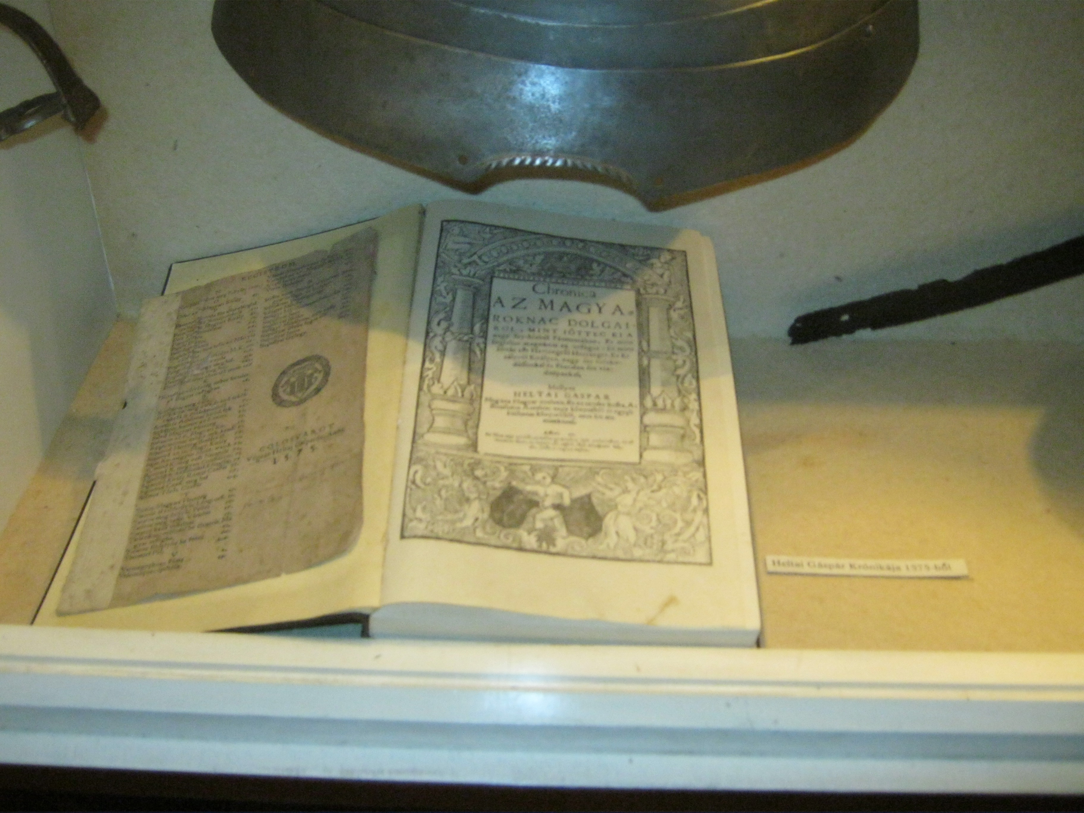 Nyilvános 1125 | 1469 | Nyírbátor, Károlyi utca 21. Báthori István Múzeum | A minorita kolostor épültét 1959-ben kapta meg a múzeum. Első igazgatója, Szalontai Barnabás áldozatos munkája nyomán két év múlva már meg is nyílhatott benne az első kiállítás. A képen Heltai Gáspár (1490 k.-1574) híres könyve, a Krónika a magyaroknak dolgairól. Felh. irod.: Látnivalók Szabolcs-Szatmár-Bereg megyében. Miskolc, Well-PRess, 1999 www.nyirbim.hu |