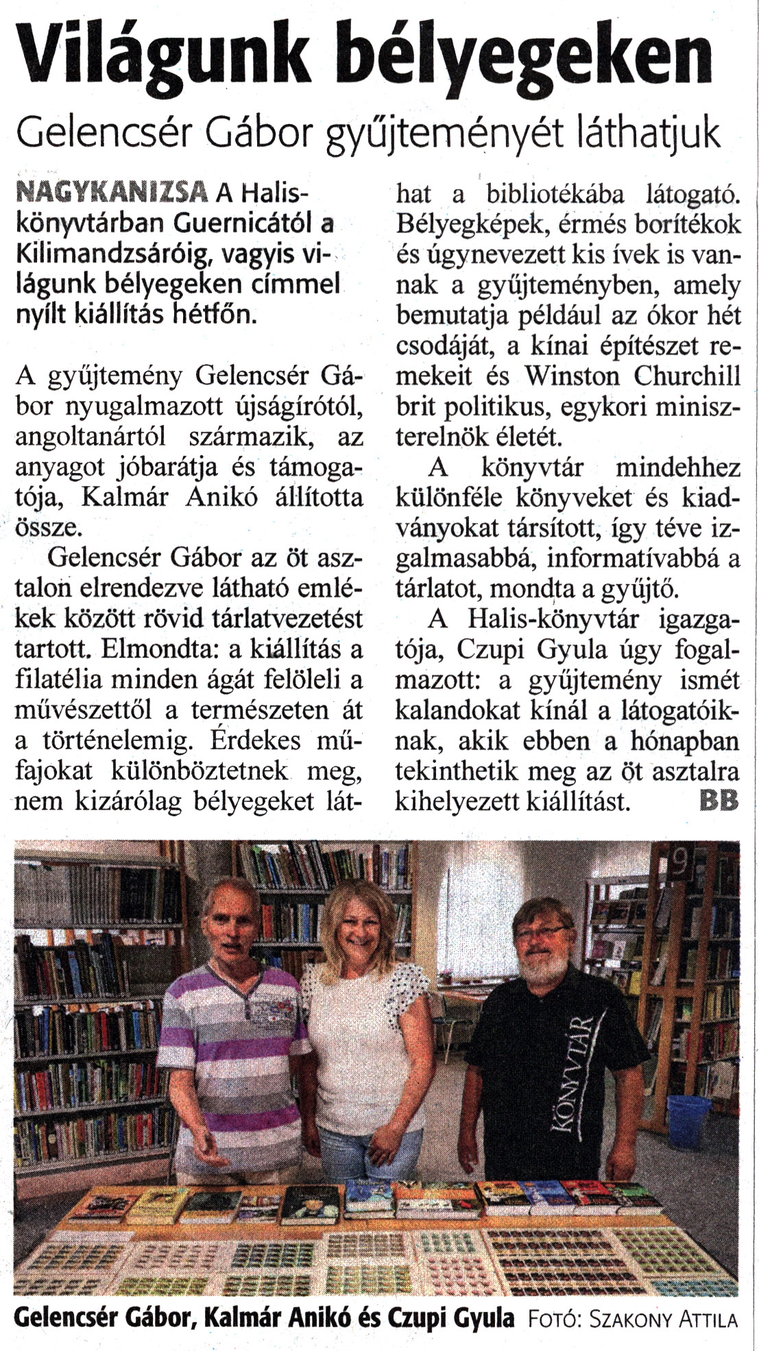 Nyilvános 1036 | 1430 | Zalai Hírlap 2023. június 21. 142. szám 16. oldal | Világunk bélyegeken Gelencsér Gábor gyűjteményét láthatjuk NAGYKANIZSA A Halis-könyvtárban Guernicától a Kilimandzsáróig, vagyis világunk bélyegeken címmel nyílt kiállítás hétfőn. A gyűjtemény Gelencsér Gábor nyugalmazott újságírótól, angoltanártól származik, az anyagot jóbarátja és támogatója, Kalmár Anikó állította össze. Gelencsér Gábor az öt asztalon elrendezve látható emlékek között rövid tárlatvezetést tartott. Elmondta: a kiállítás a filatélia minden ágát felöleli a művészettől a természeten át a történelemig. Érdekes műfajokat különböztetnek meg, nem kizárólag bélyegeket lát- hat a bibliotékába látogató. Bélyegképek, érmés borítékok és úgynevezett kis ívek is vannak a gyűjteményben, amely bemutatja például az ókor hét csodáját, a kínai építészet remekeit és Winston Churchill brit politikus, egykori miniszterelnök életét. A könyvtár mindehhez különféle könyveket és kiadványokat társított, így téve izgalmasabbá, informatívabbá a tárlatot, mondta a gyűjtő. A Halis-könyvtár igazgatója, Czupi Gyula úgy fogalmazott: a gyűjtemény ismét kalandokat kínál a látogatóiknak, akik ebben a hónapban tekinthetik meg az öt asztalra kihelyezett kiállítást. BB Gelencsér Gábor, Kalmár Anikó és Czupi Gyula Fotó: Szakony Attila |