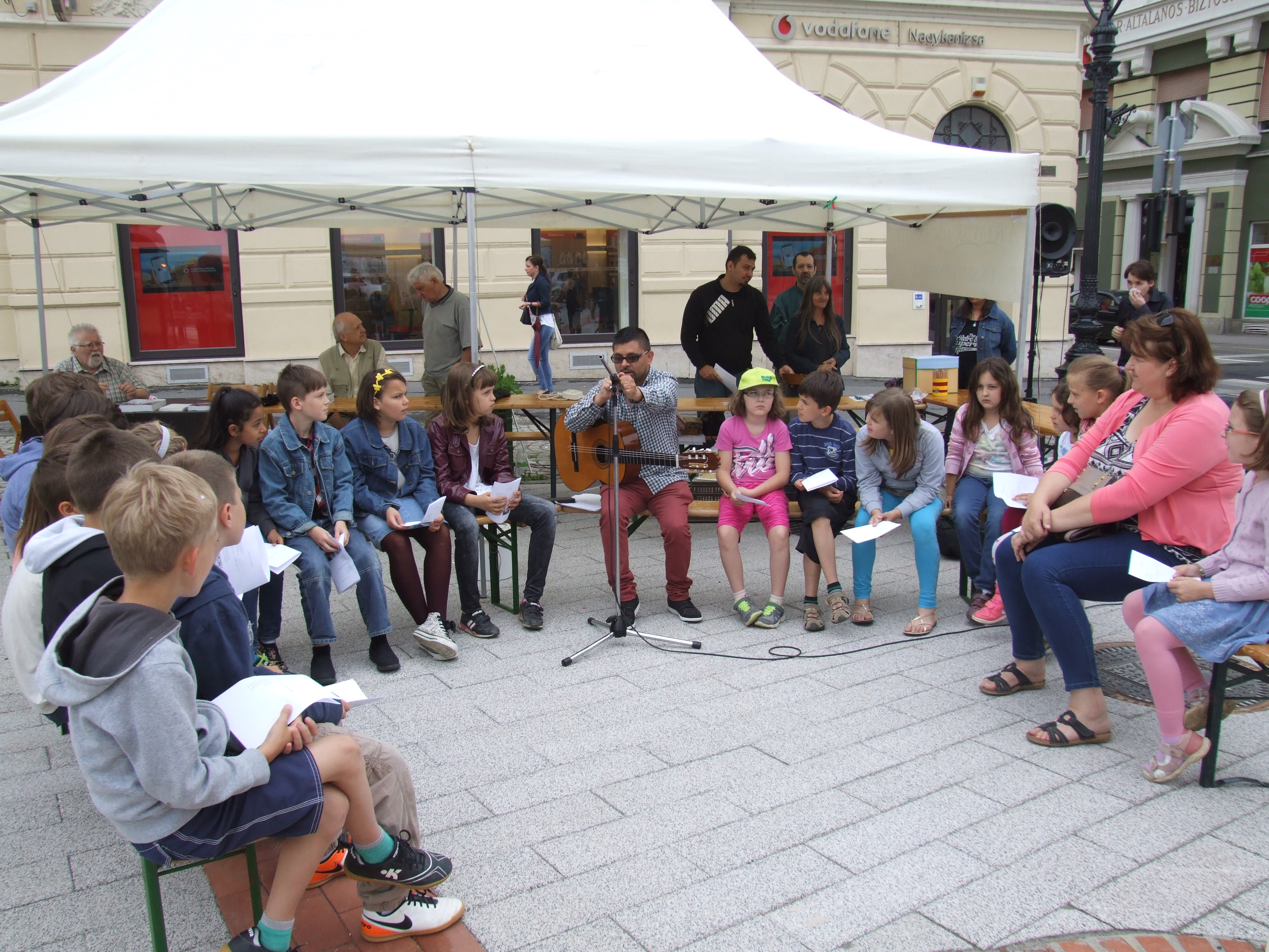 2016.06.10. Ünnepi könyvhét sátor Fenyvesi Attila dalt tanít diákoknak DSCF5831.JPG