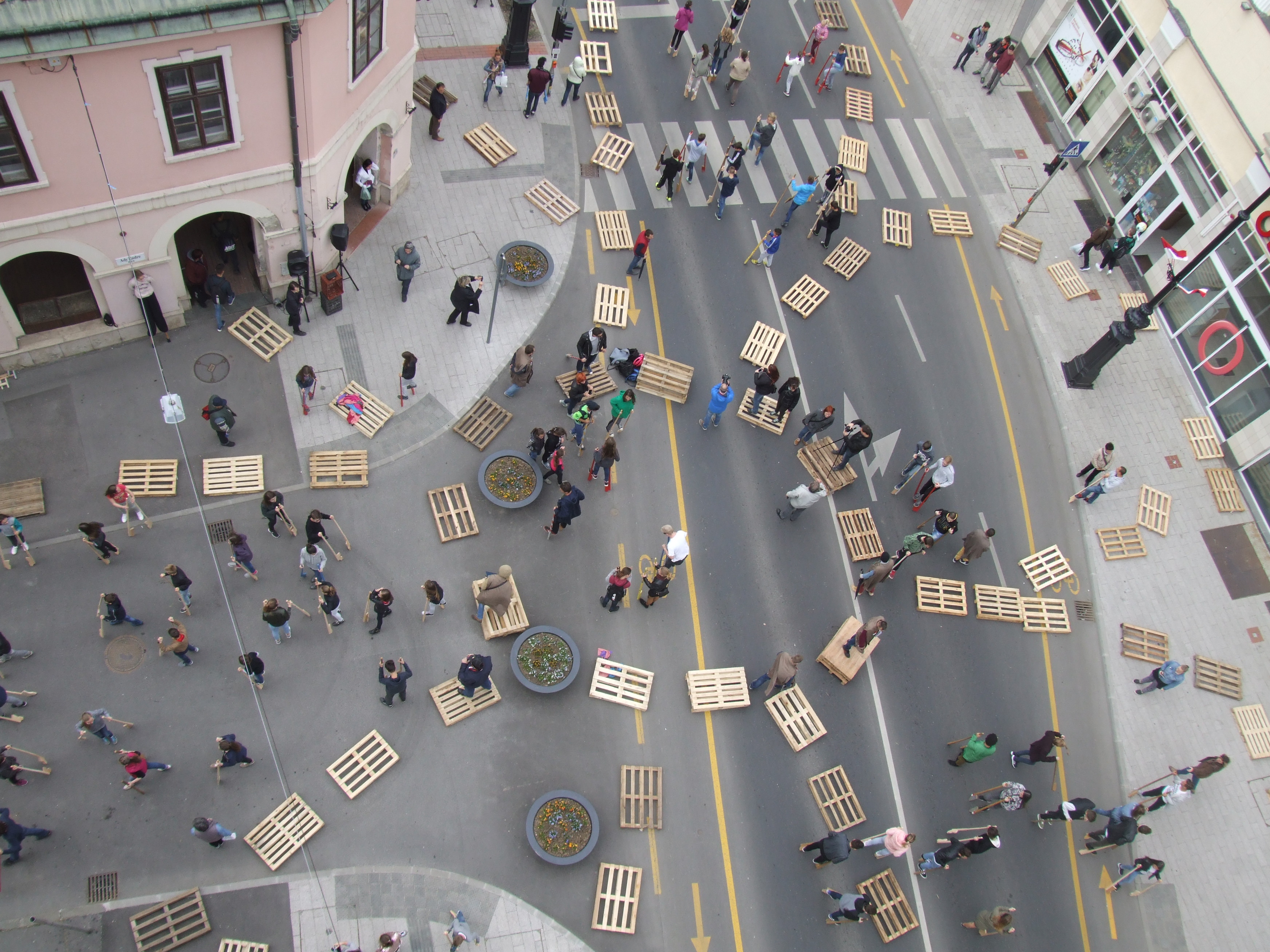 2017.04.27. Tömeges gólyalábra állás a Fő út - Ady u. kereszteződésében